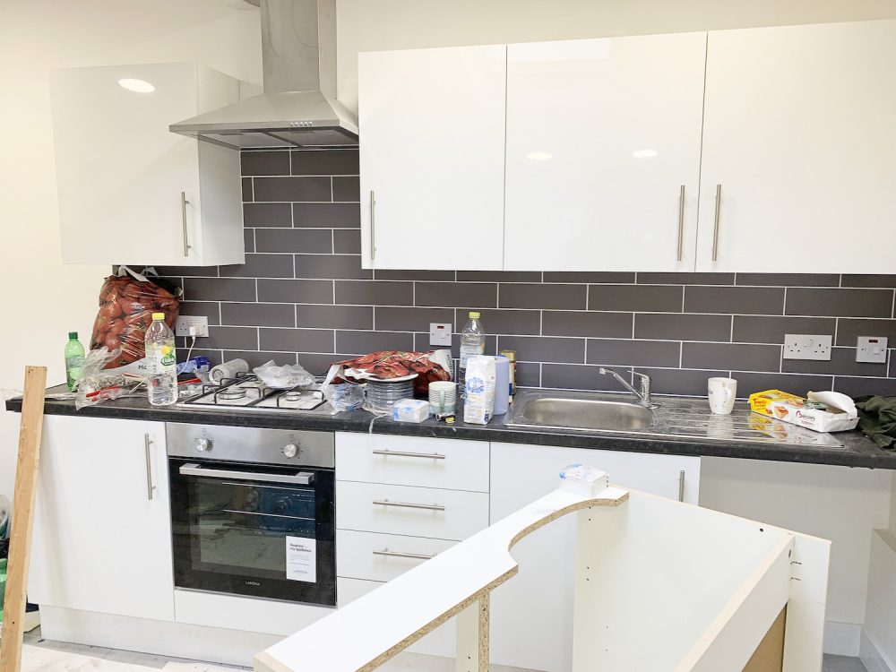 There is a large open area on the ground floor, with 3 rooms on the ground floor, 2 showers and 2 toilets. There is also a large separate kitchen room, with a fitted kitchen. There are 3 bedrooms on the first floor.