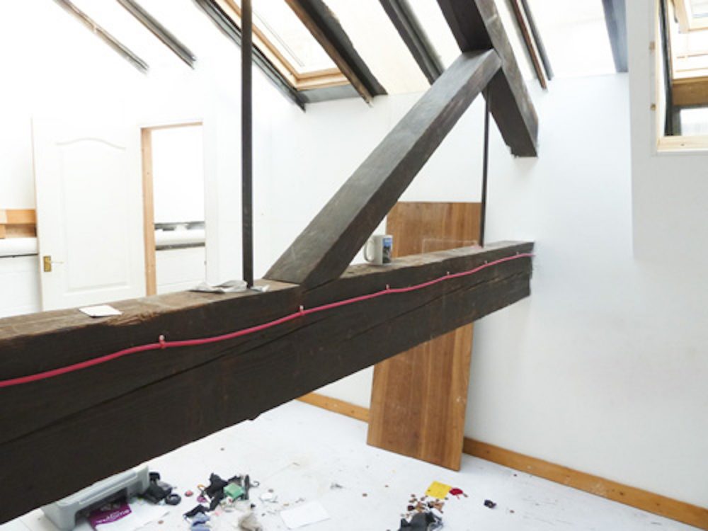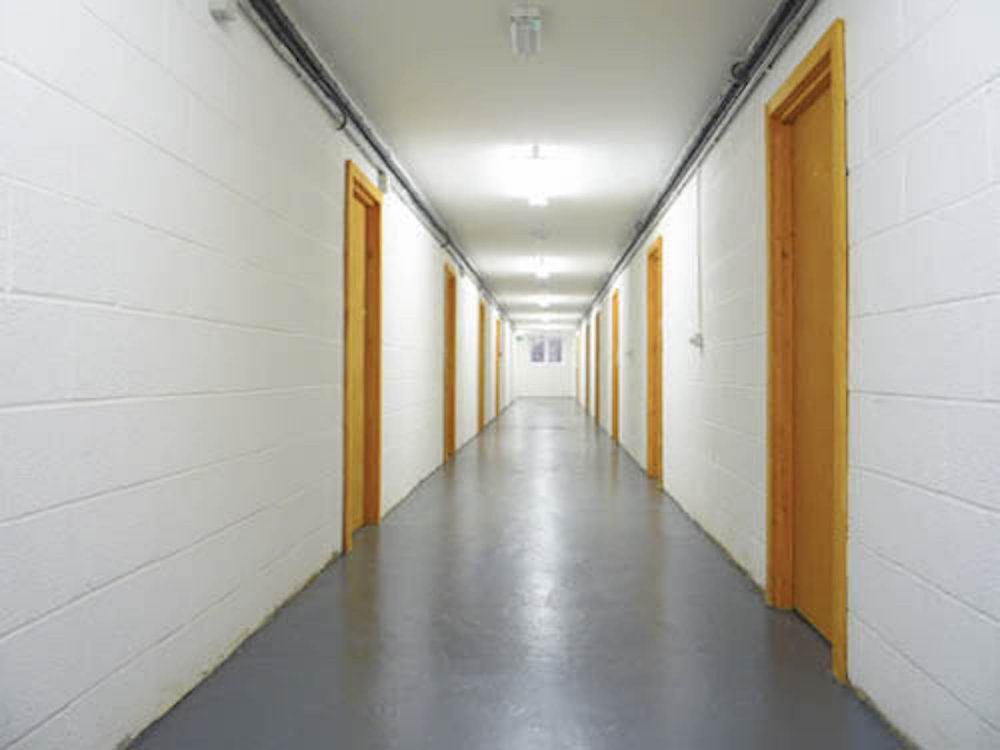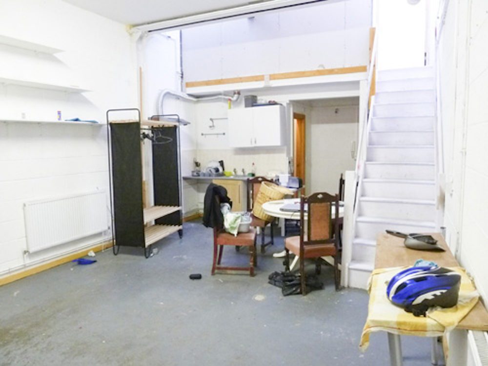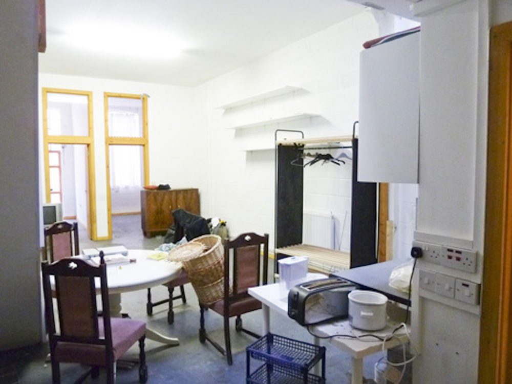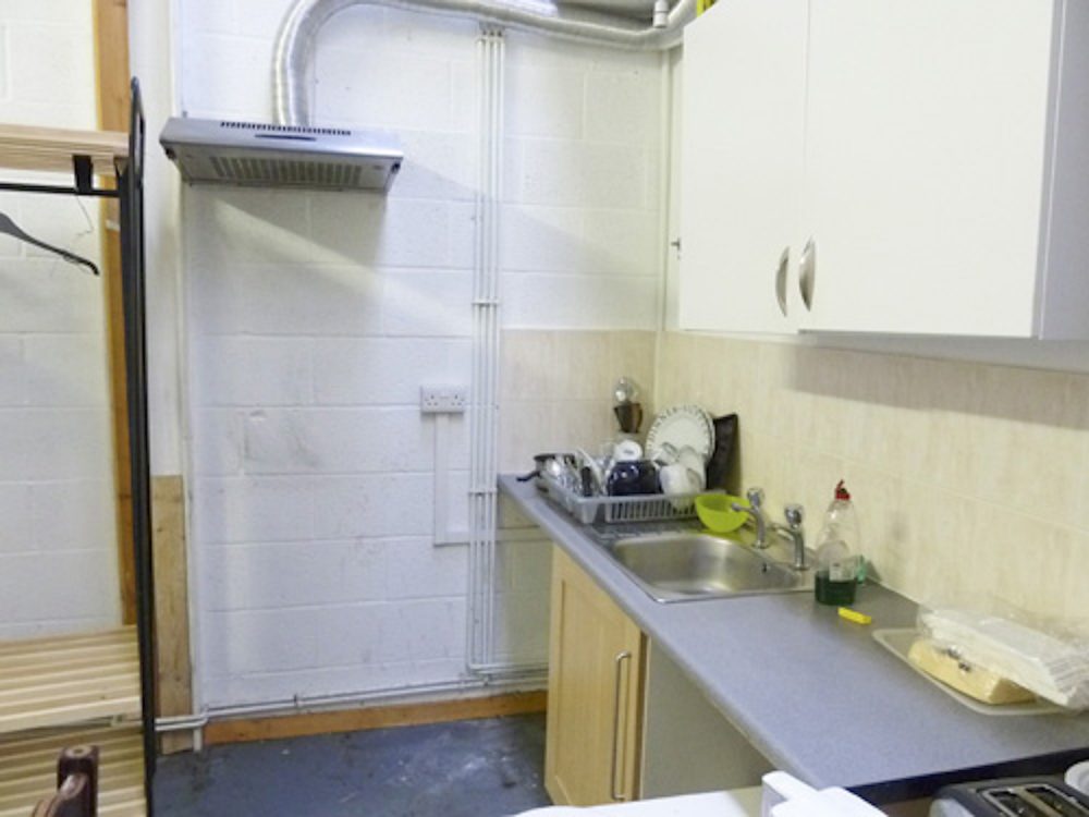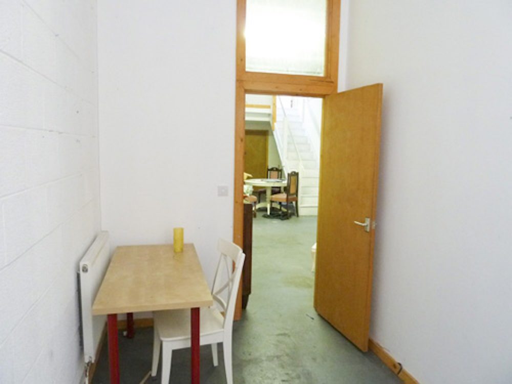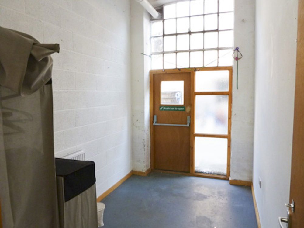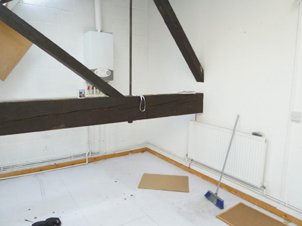 The studio has white walls and a concrete floor (painted flint grey), electricity points, lighting and gas central heating.