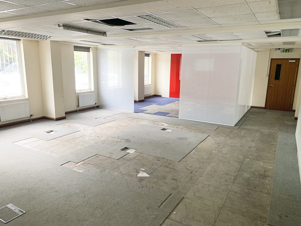 The ground floor compromises of a reception for the first floor and a reception area with office for the ground floor, 3 large open plan offices, 5 partitioned offices, a kitchen and toilet.