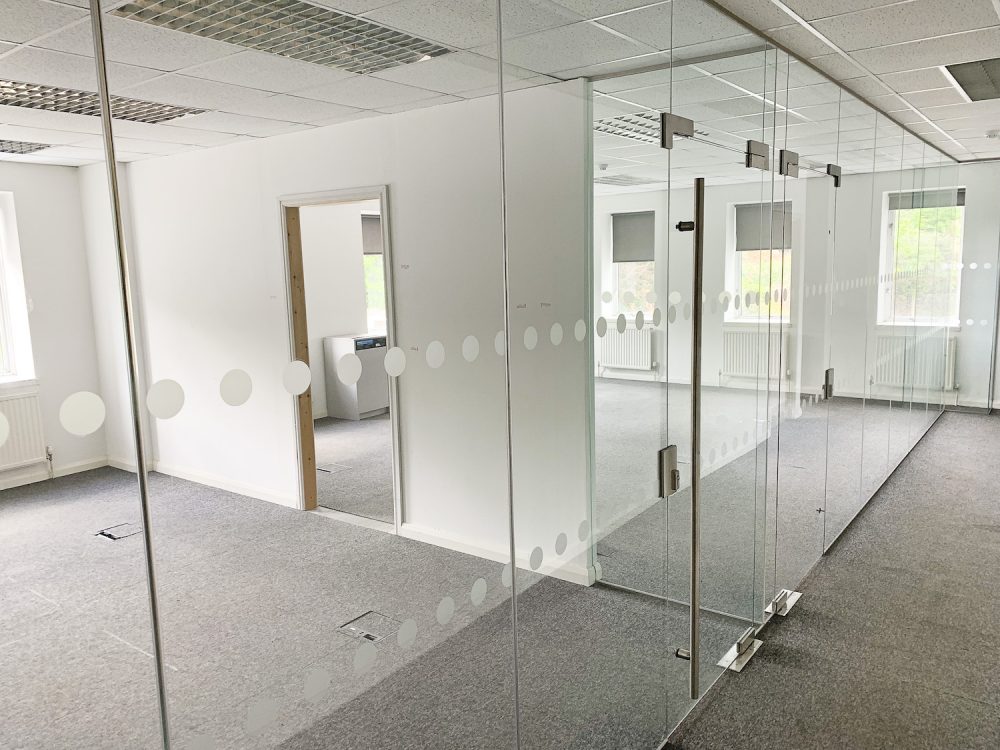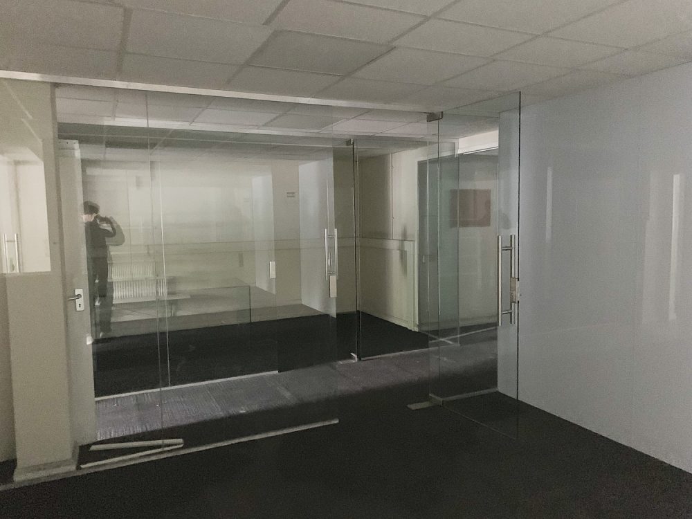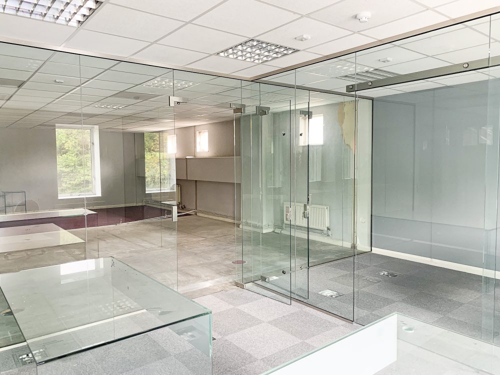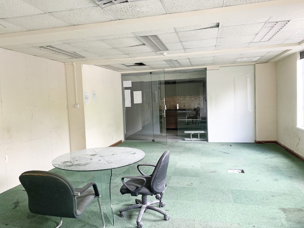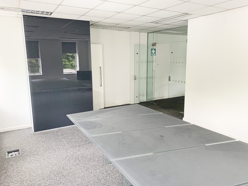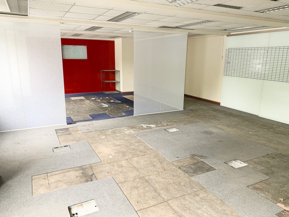 The first floor consists of 1 large open plan office, 1 store, 9 glass partitioned offices , a kitchen and toilets.