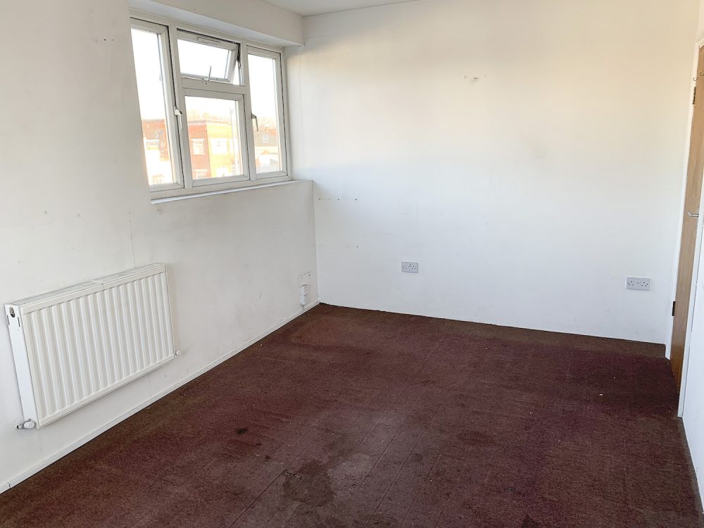 The studio consist of a large open area, with bright white walls, double glazed windows for lots of natural light, wooden laminate flooring and a ceiling height of 8ft.