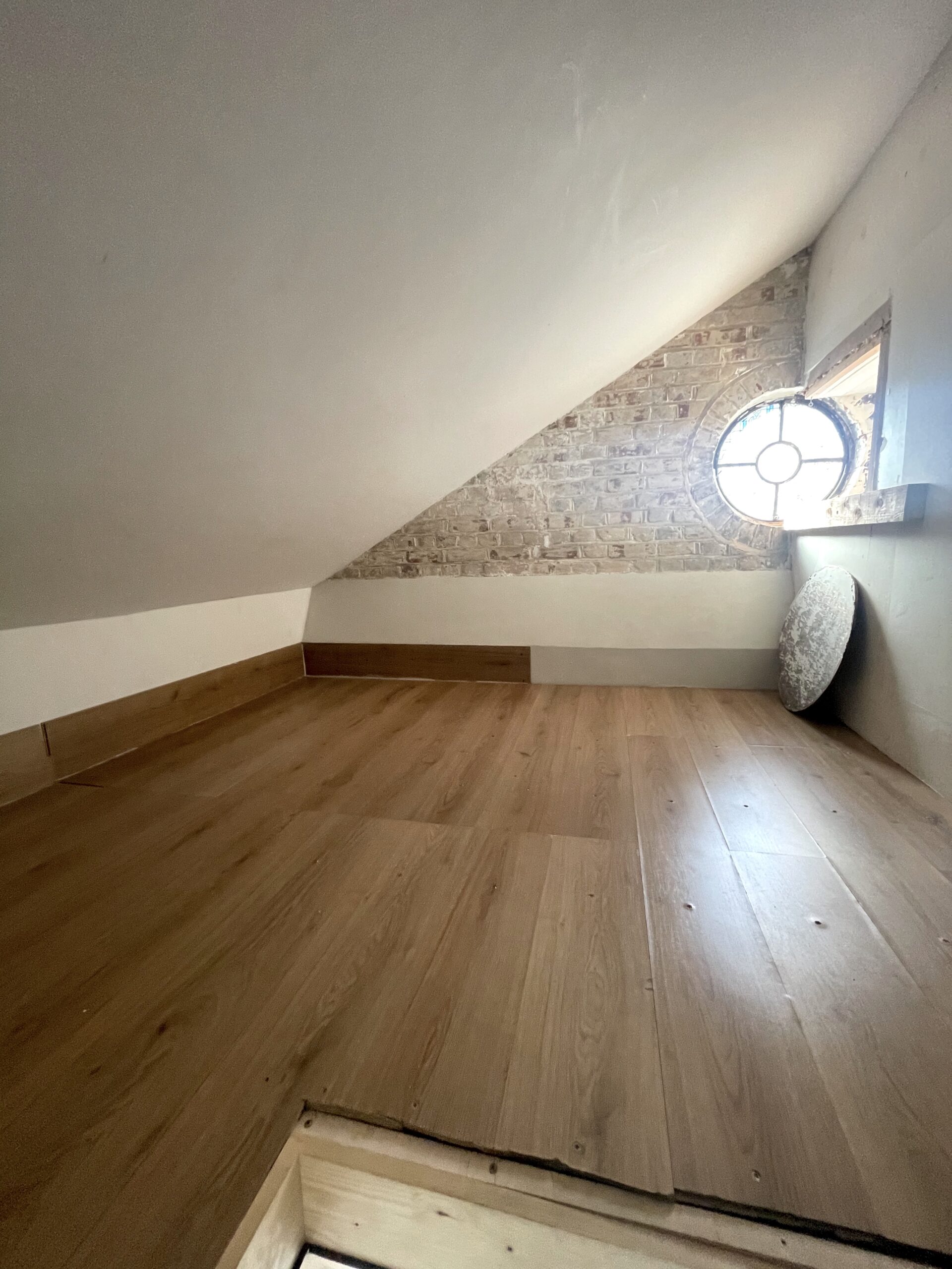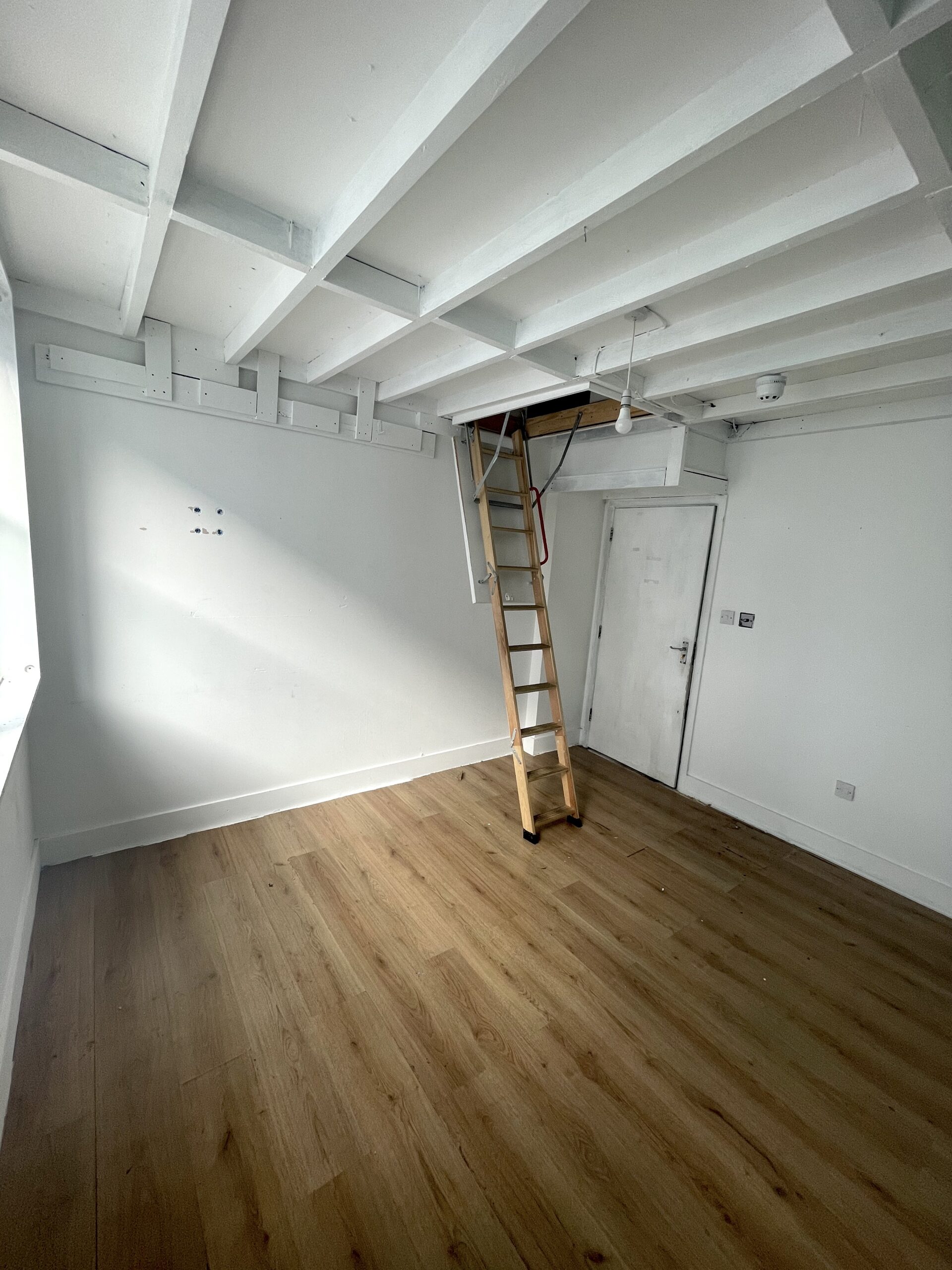 The studio has 123 sq ft on the ground and has a 77 sq ft mezzanine with a 16ft roof height.
