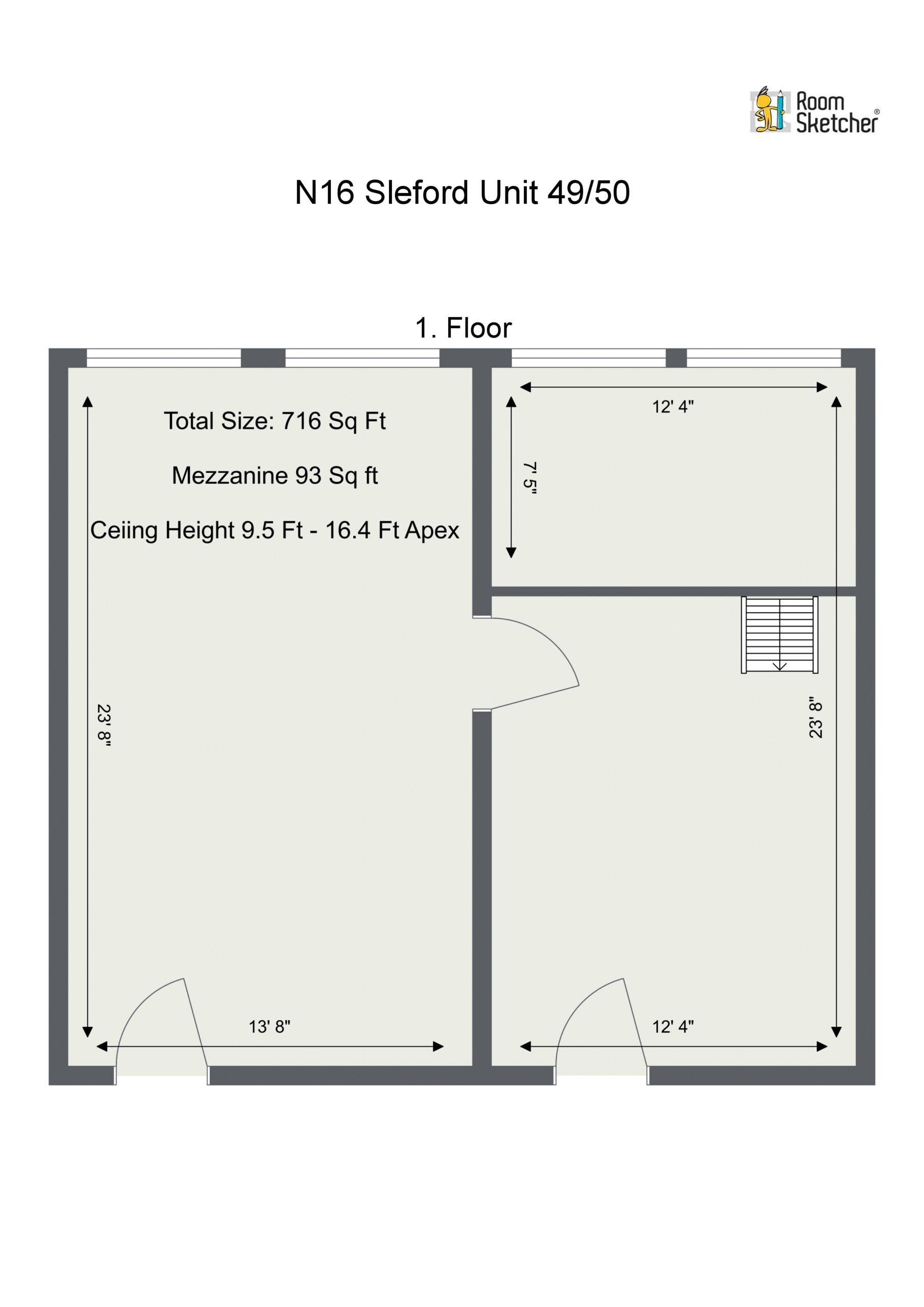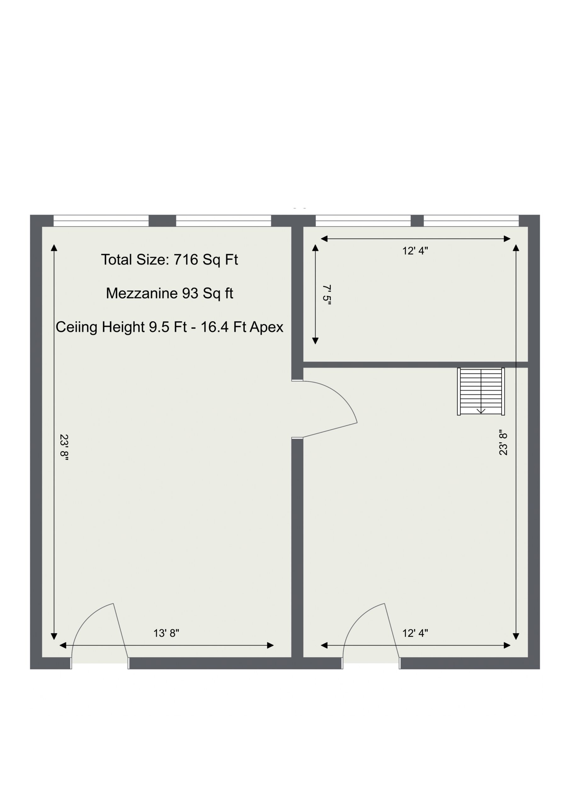 250 sq ft studio with mezzanine (70 sq ft) available in converted warehouse