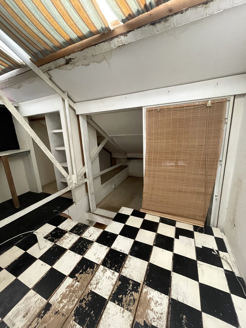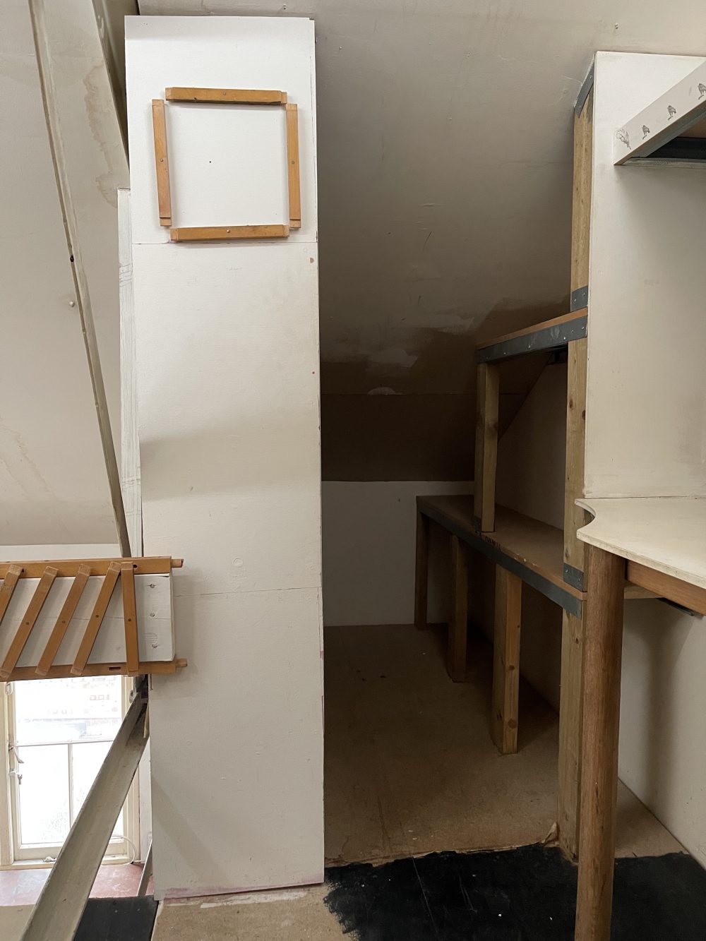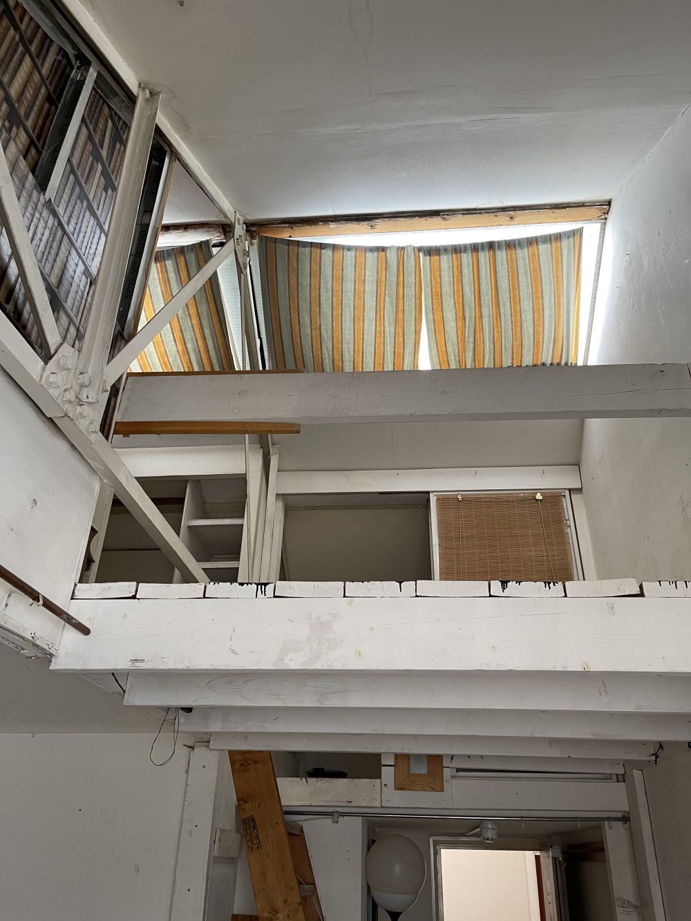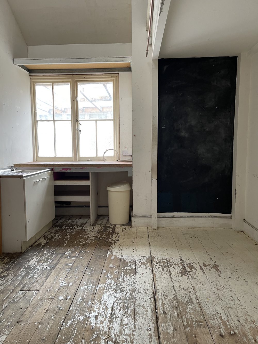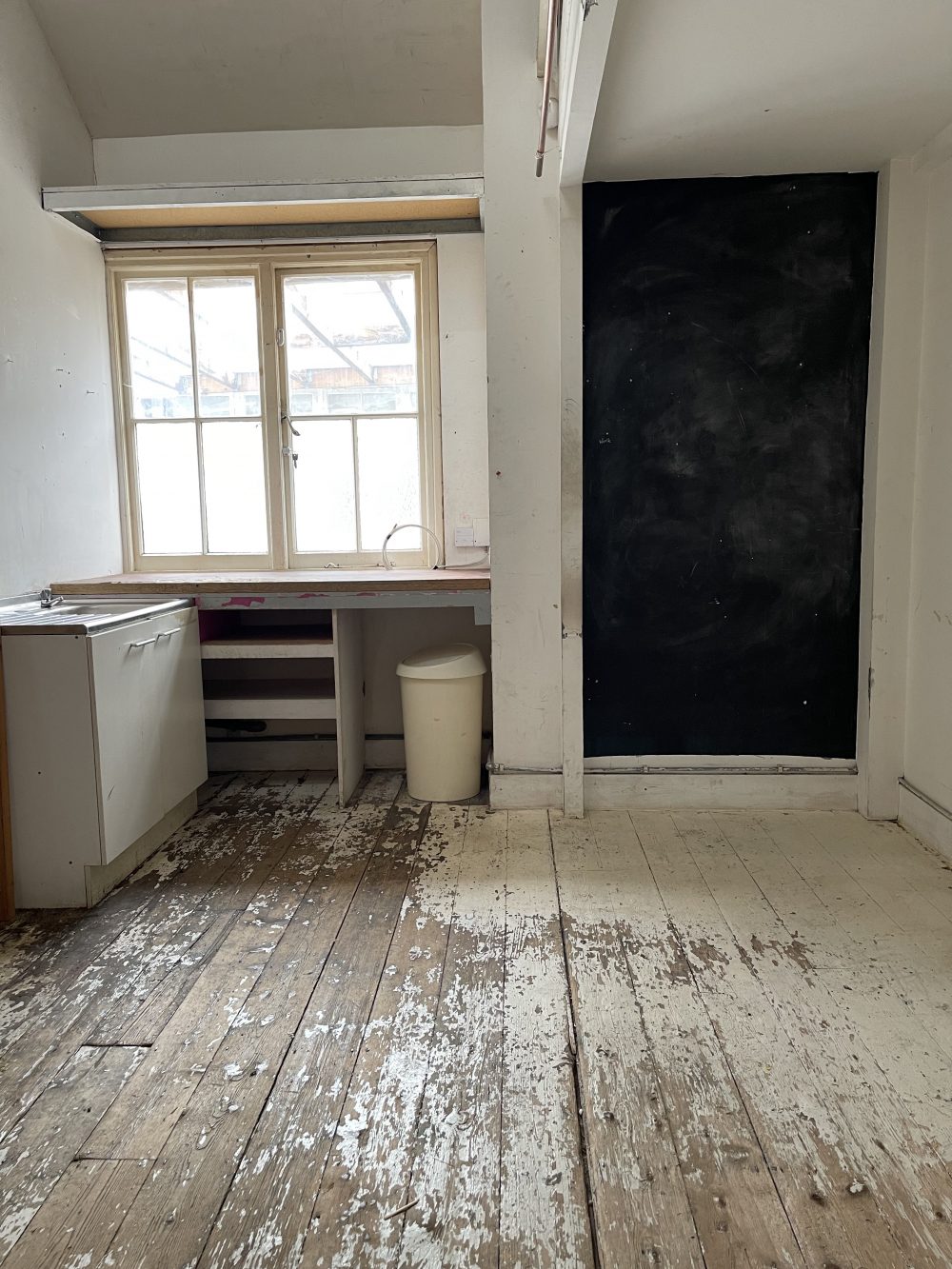 The studio is 380 sq ft in total size which consists of a 250 sq ft ground floor and a 130 sq ft mezzanine floor with a roof height of 10 to 16 ft.