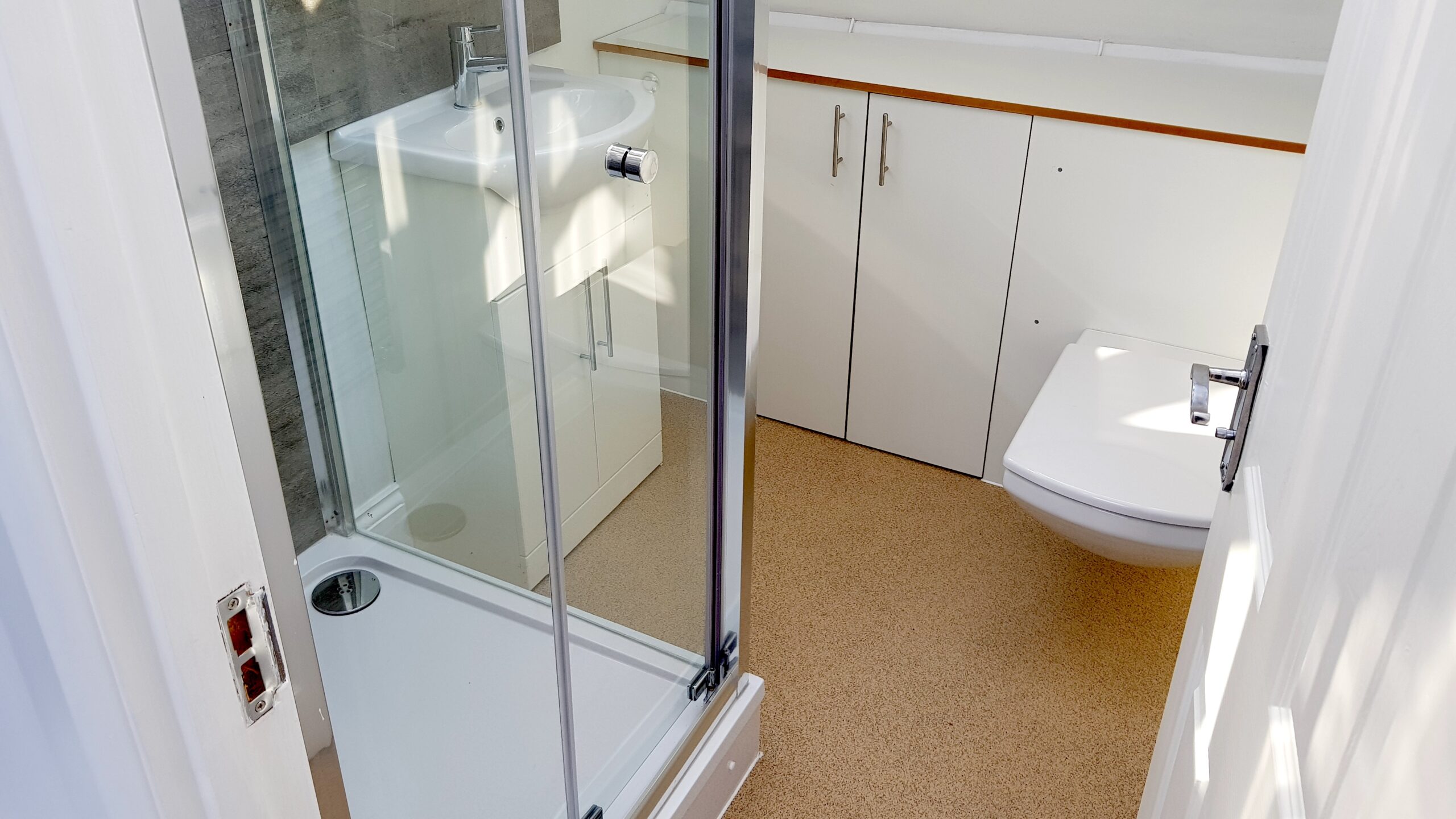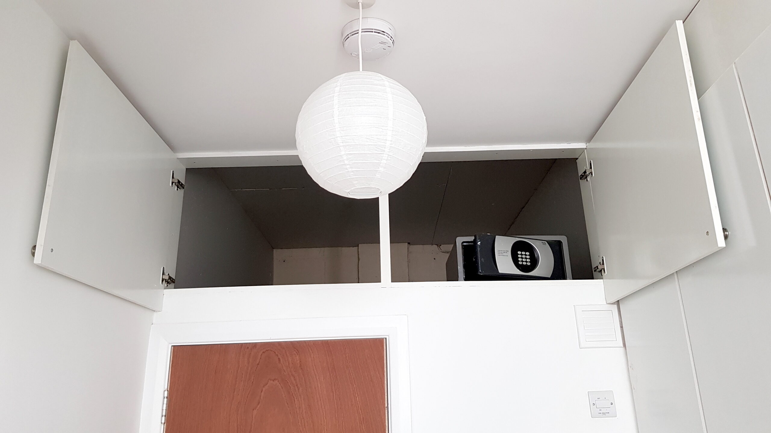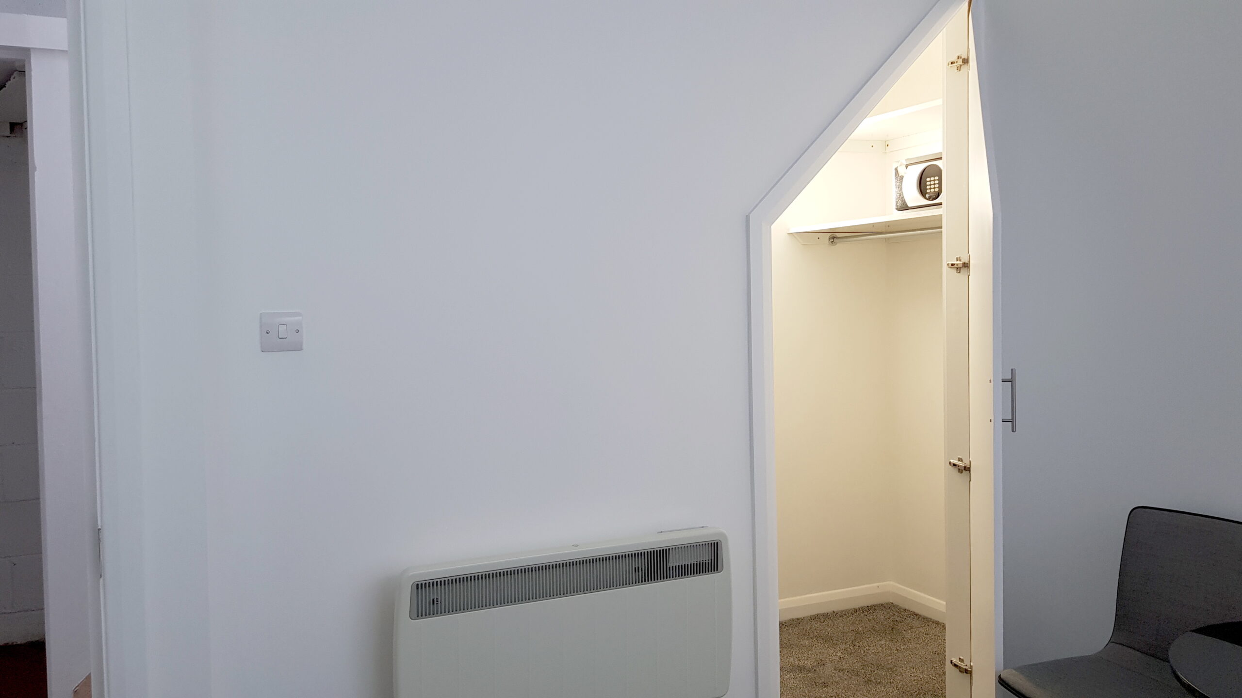 The warehouse has been converted and has 5 spacious rooms, all carpeted, (each with their own safe for valuables).