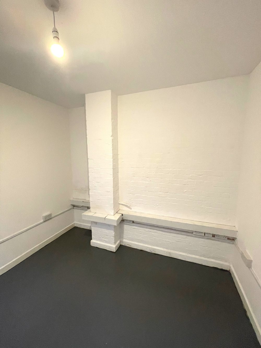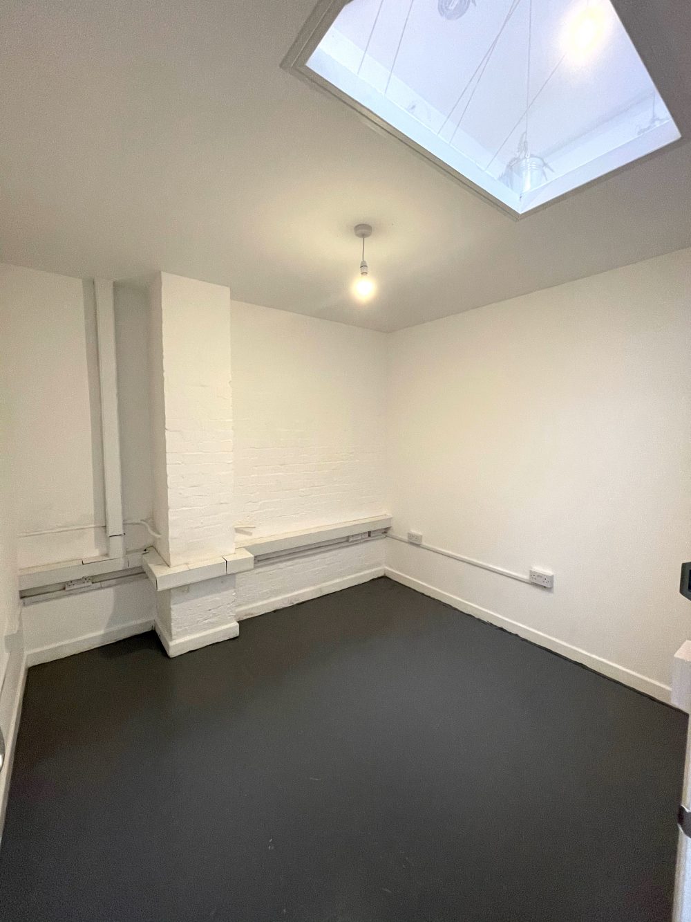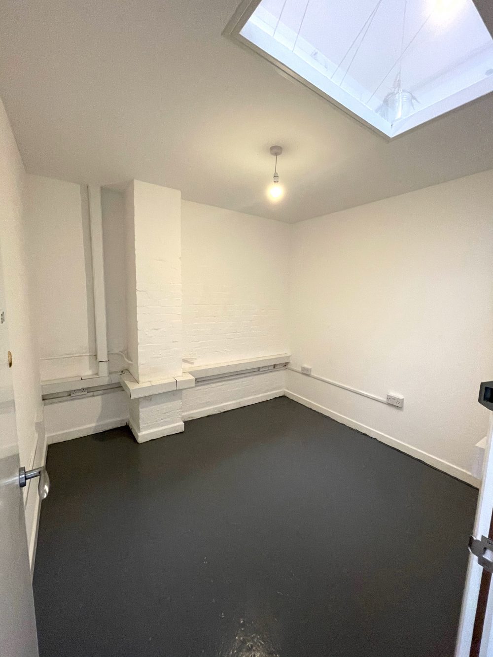 This studio is 88 sq ft in total and also has a ceiling height of 8.4 ft, it has bright white walls throughout, a grey concrete floor, two windows and a small skylight. – £81 Pw (RENT INCLUDES BILLS)