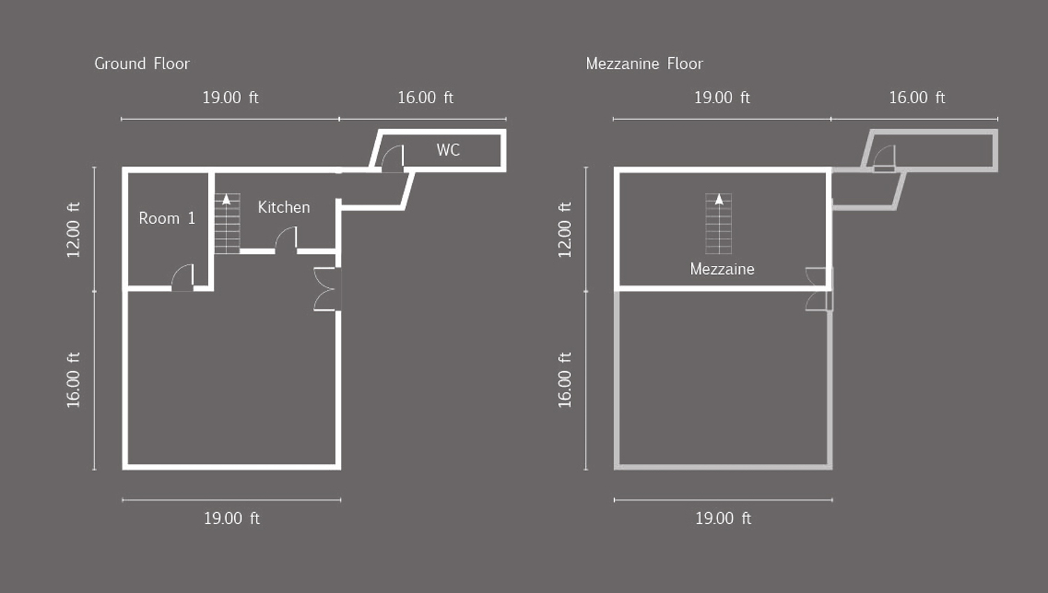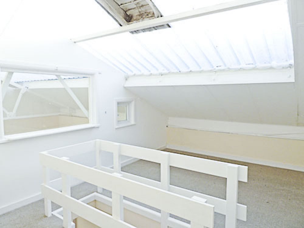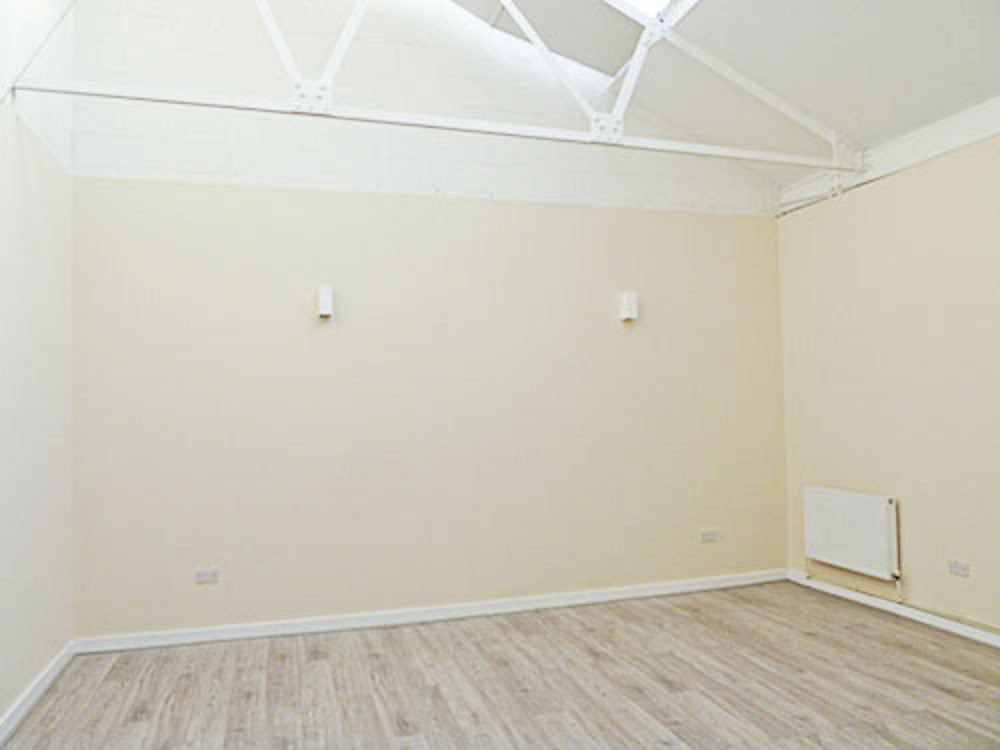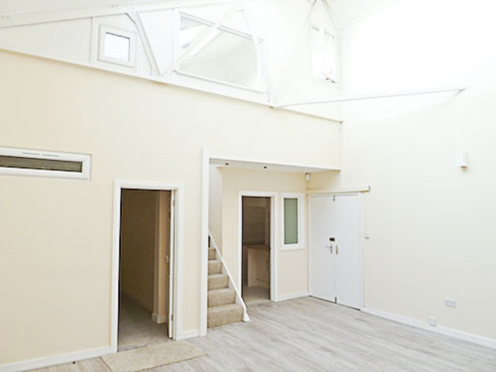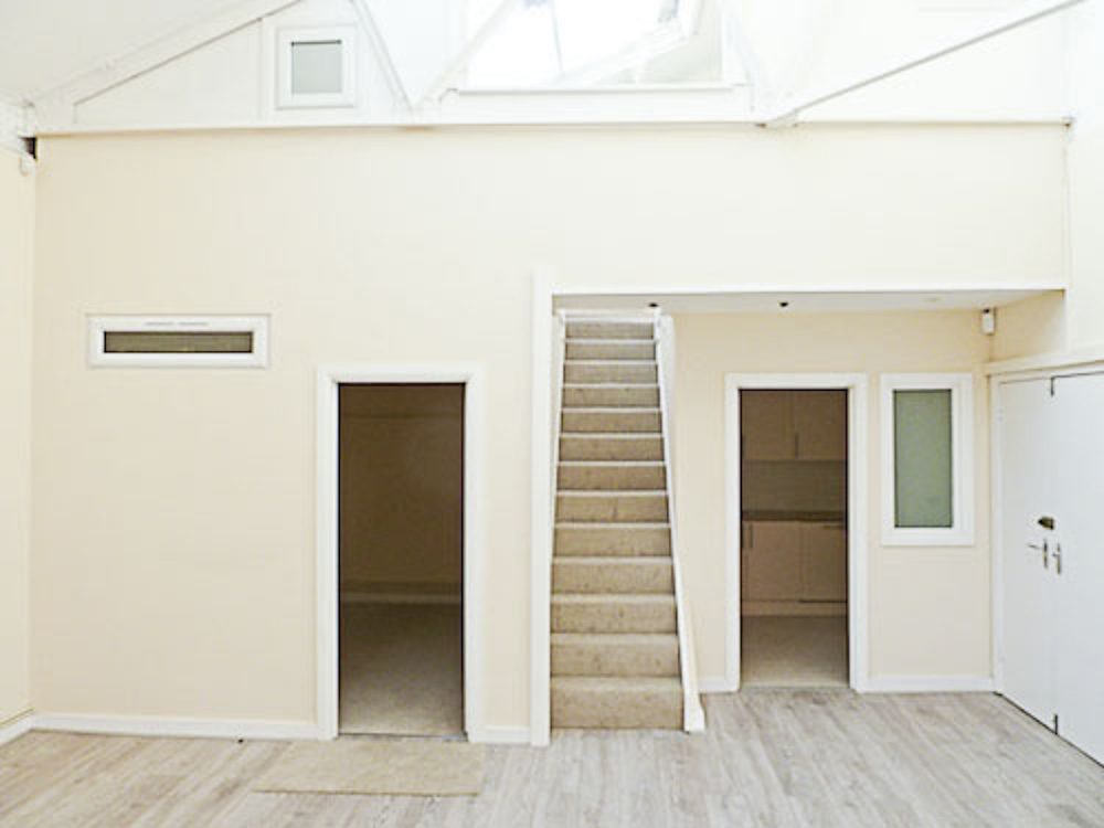 900 sq ft ground floor gallery style live work unit with high roof , 1 room and mezzanine floor available in warehouse conversion.