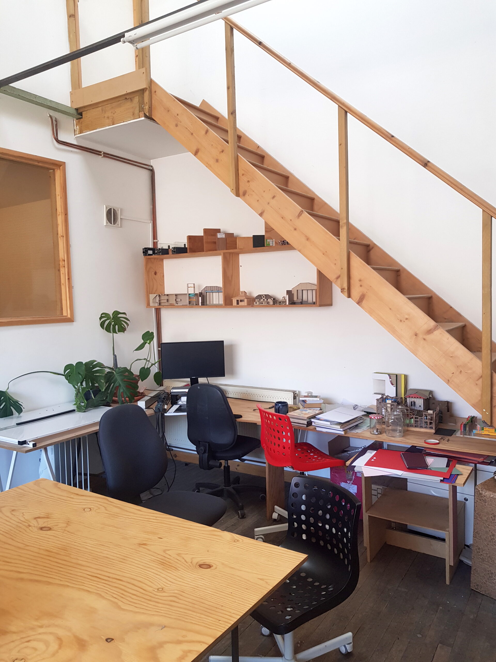 The studio has a communal kitchen area and also a communal toilet for it’s tenants.