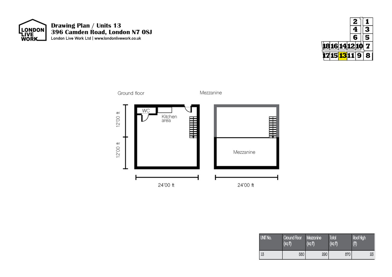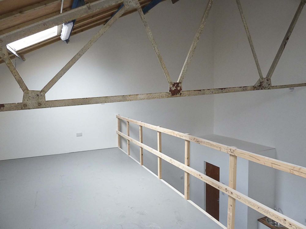 580 sq ft Ground floor and 290 sq ft mezzanine floor, 23 ft high pitched roof