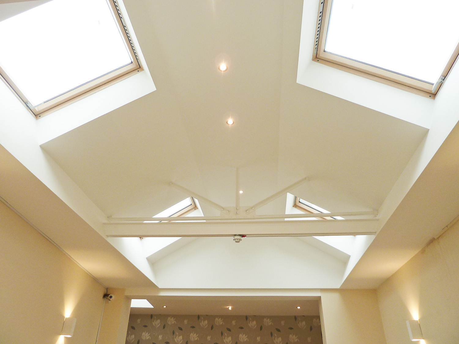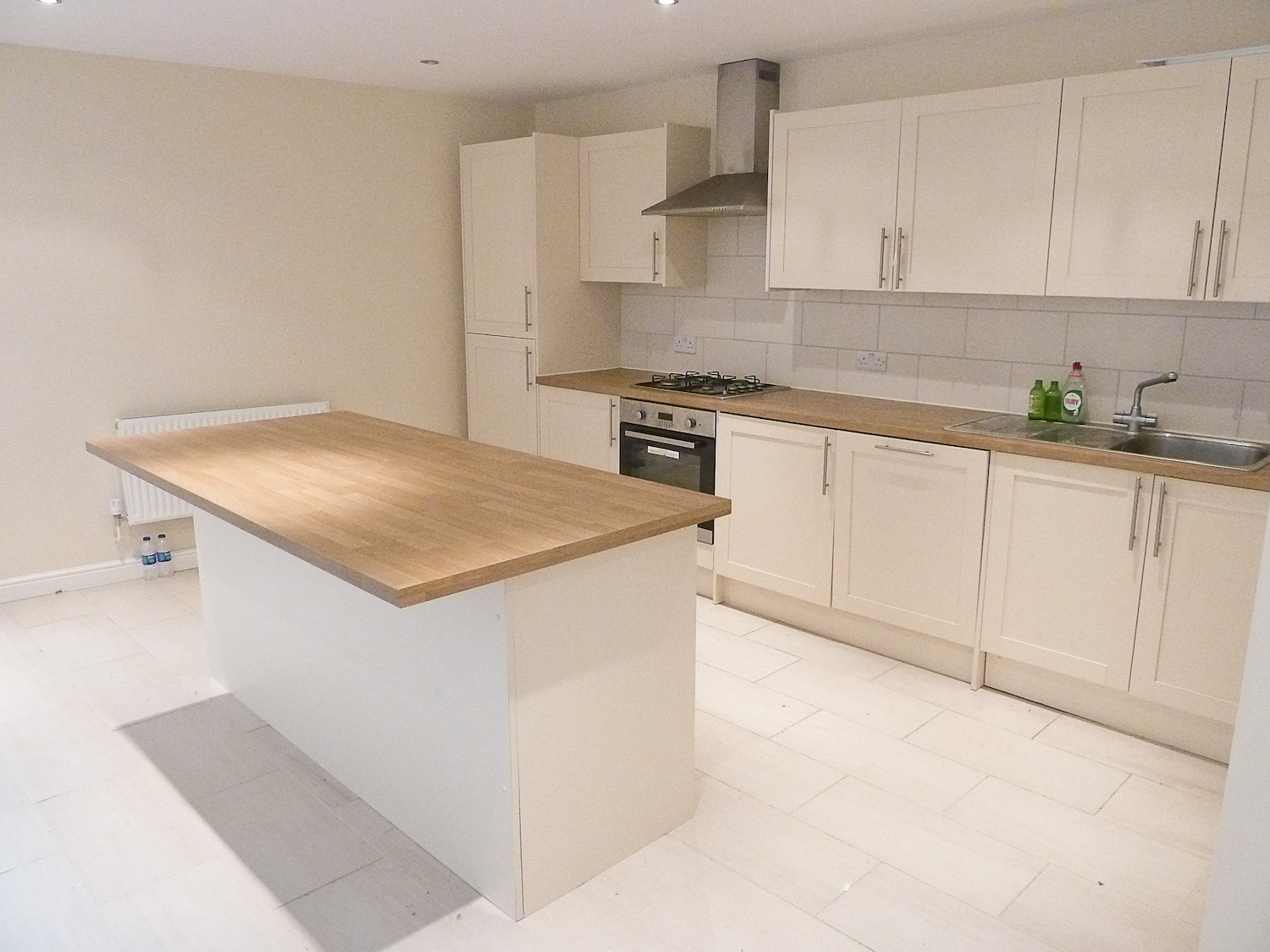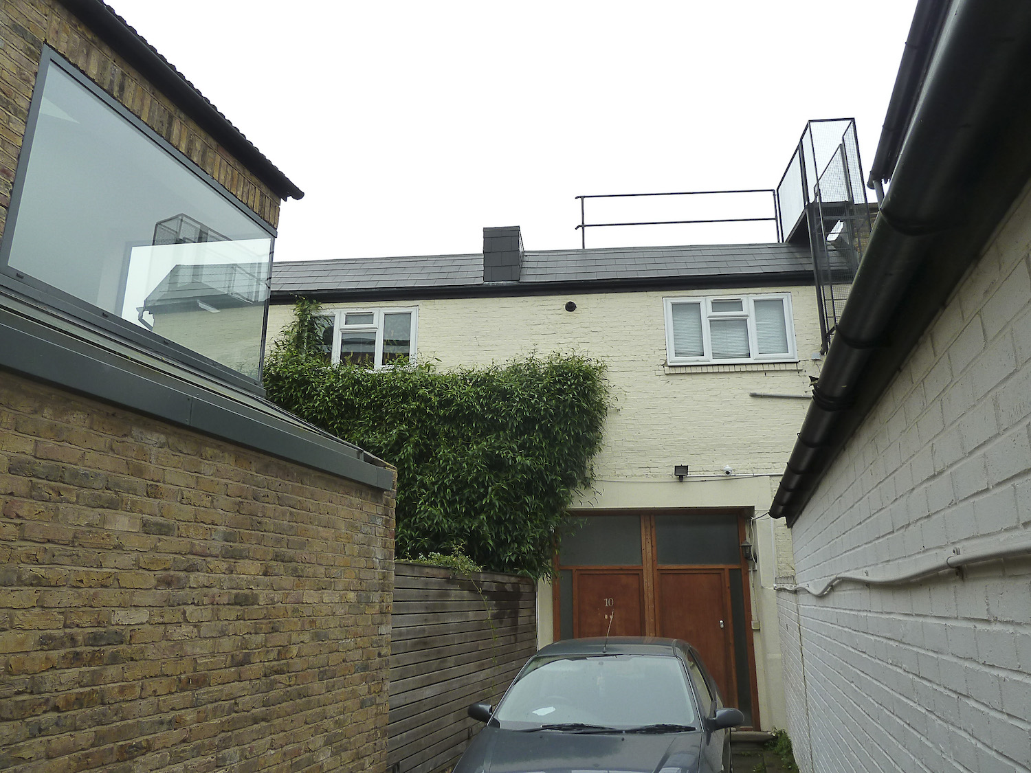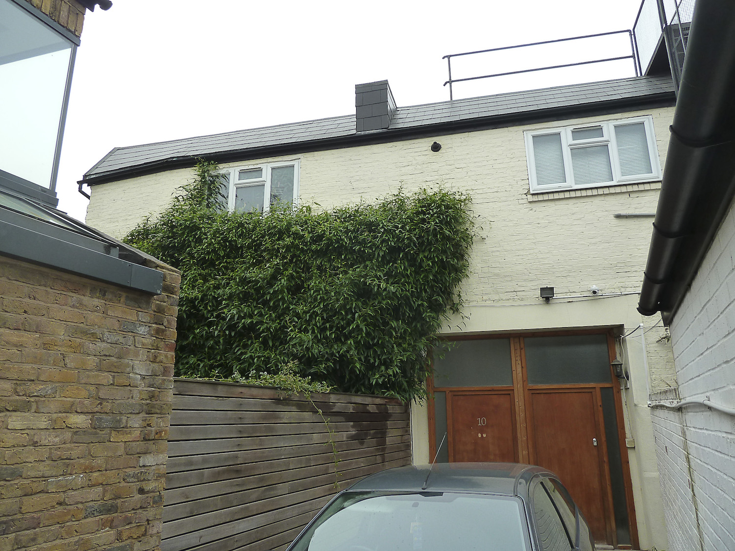The studio measures 800 sq ft on the ground floor, comprising of a large open area, with high pitched roof (19’00) and glass skylights, plus an open plan kitchen area, and a bath/shower/toilet room.