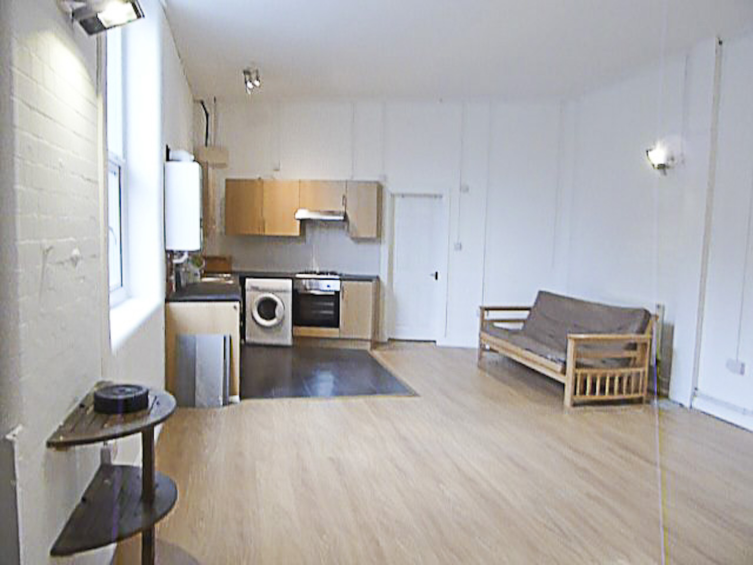 There is wooden laminate flooring, electricity, lighting and gas central heating.