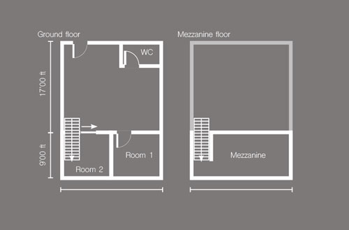 The ground floor unit consists of 500 sq ft on the ground floor and 150 sq ft on the mezzanine floor.