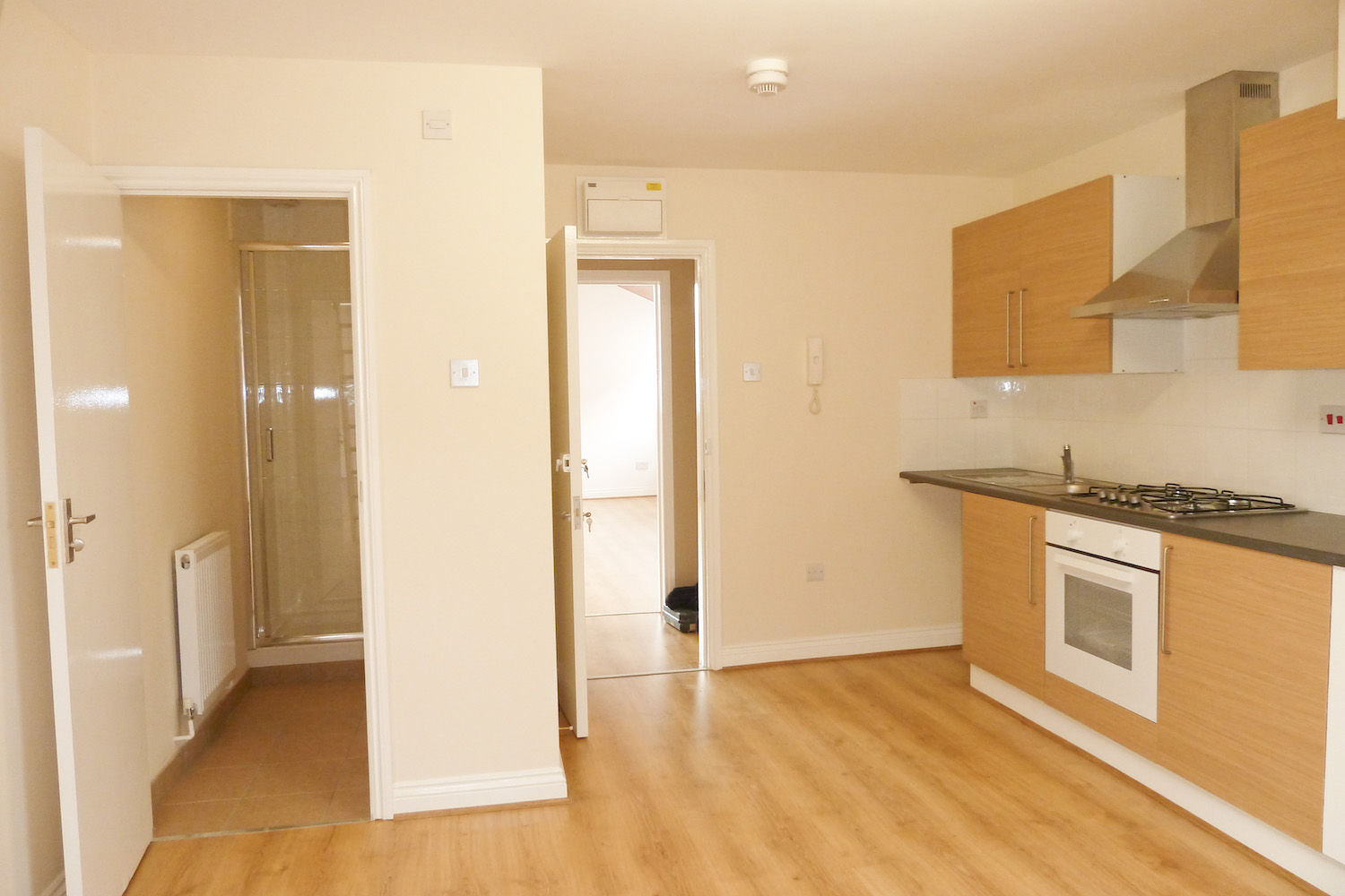 The studio has gas central heating, a shower, toilet and kitchen,