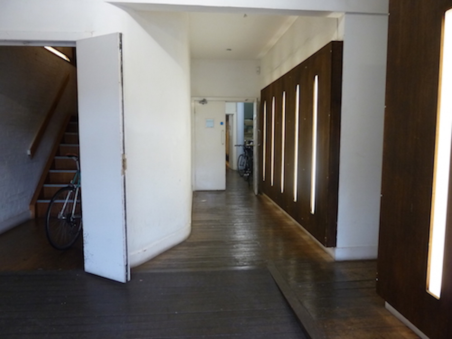 Studio is located on the lower ground floor and has no windows inside, but has natural light coming in from the skylights in the corridors.