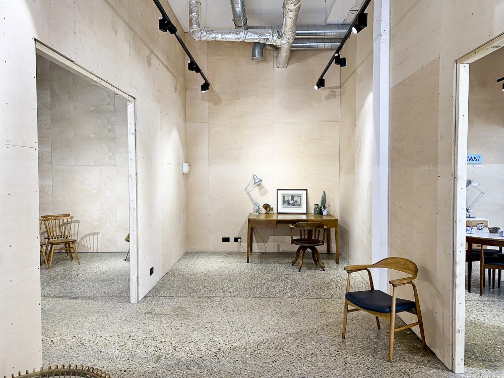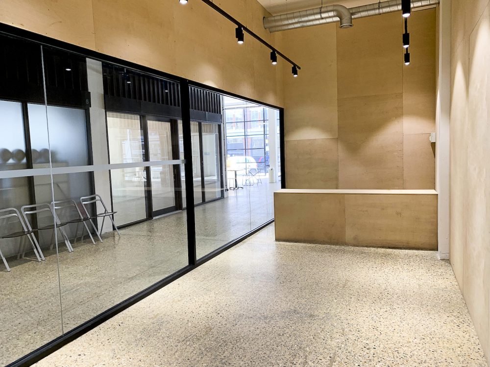 Each studio consists of a large open work space, with a very high roof, lots of natural light, marble stone flooring, exposed brick and plywood walls.