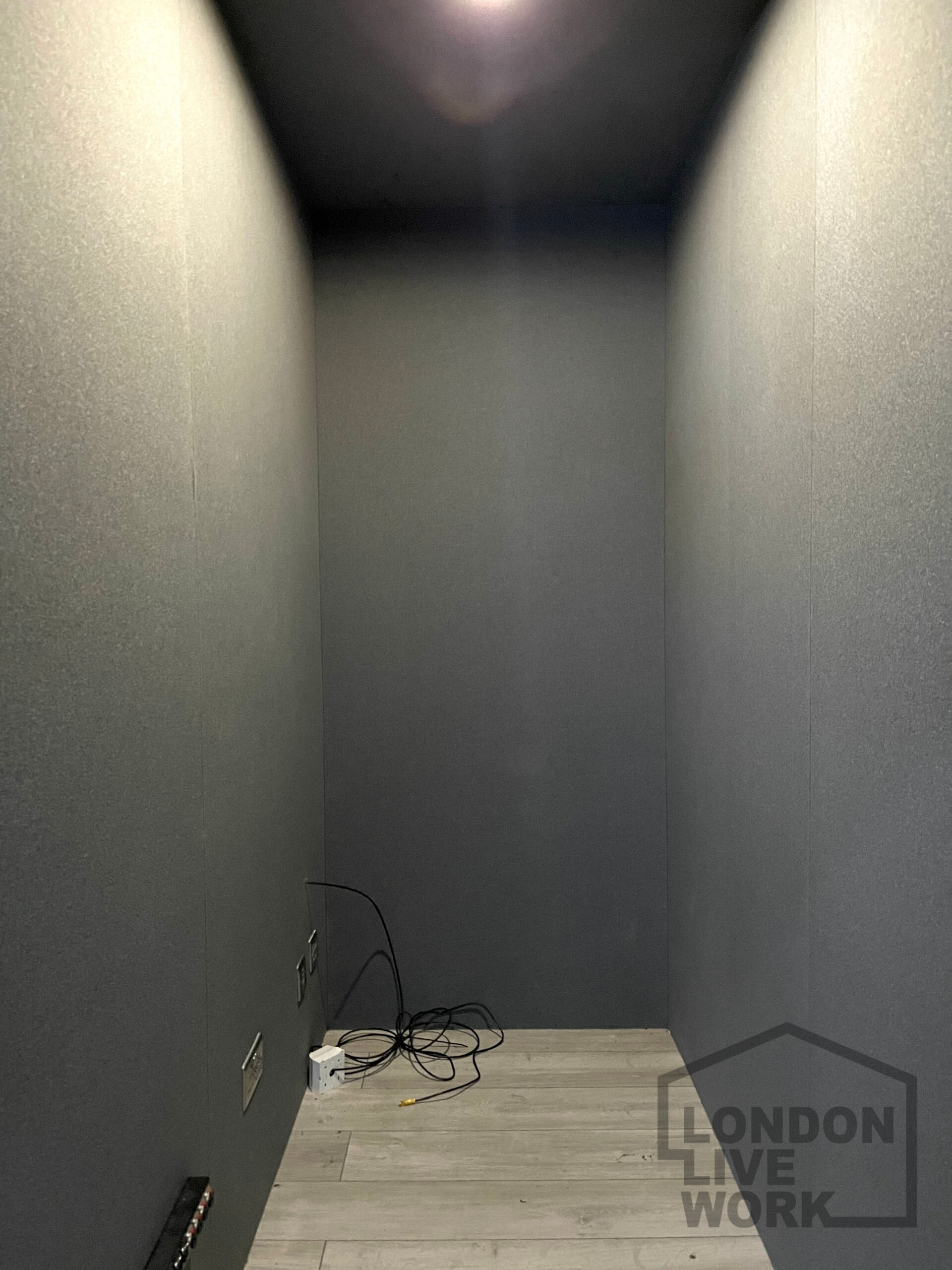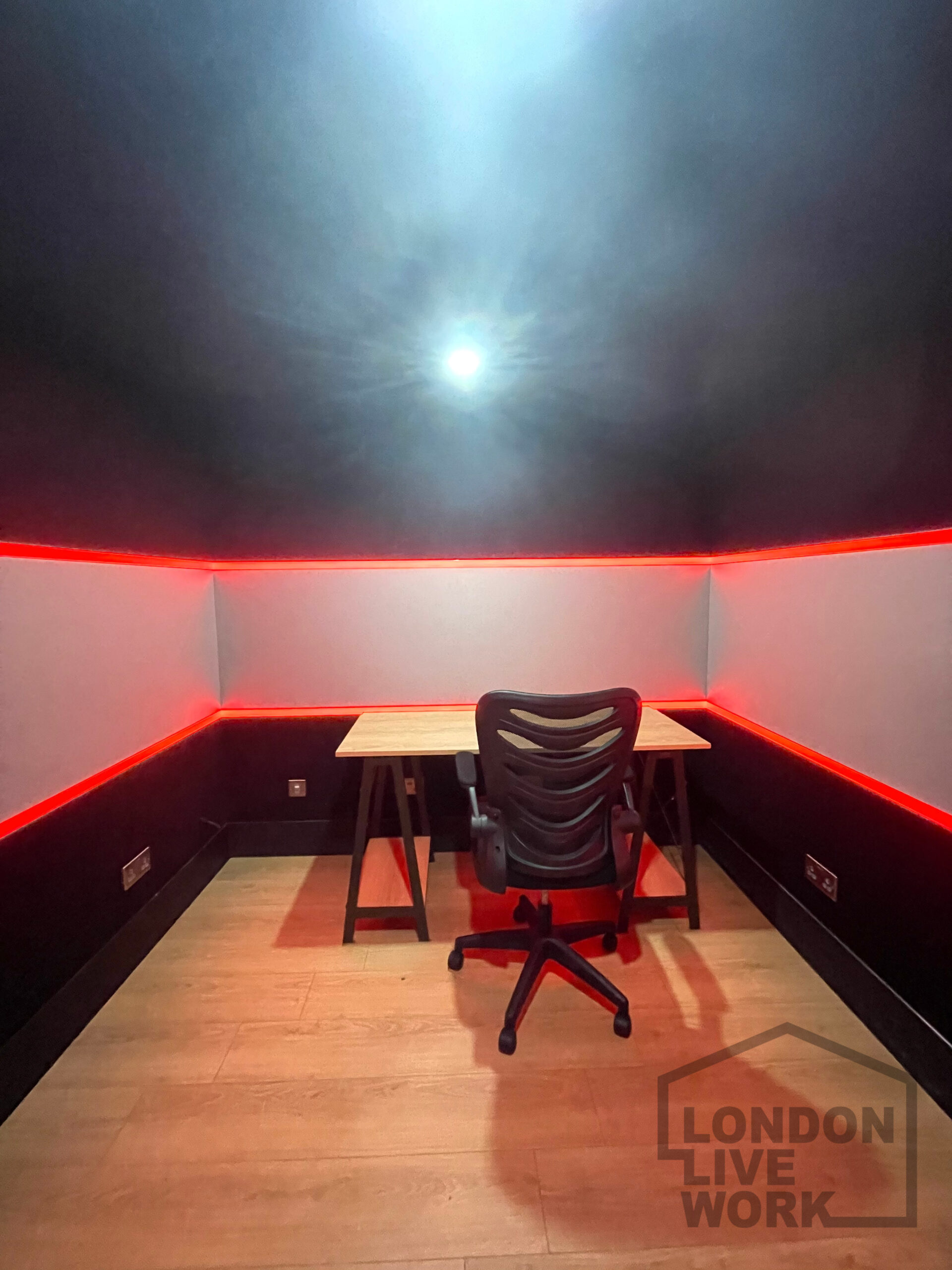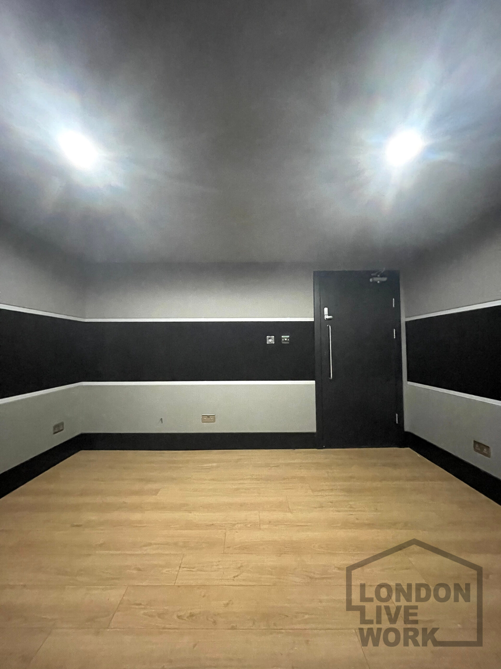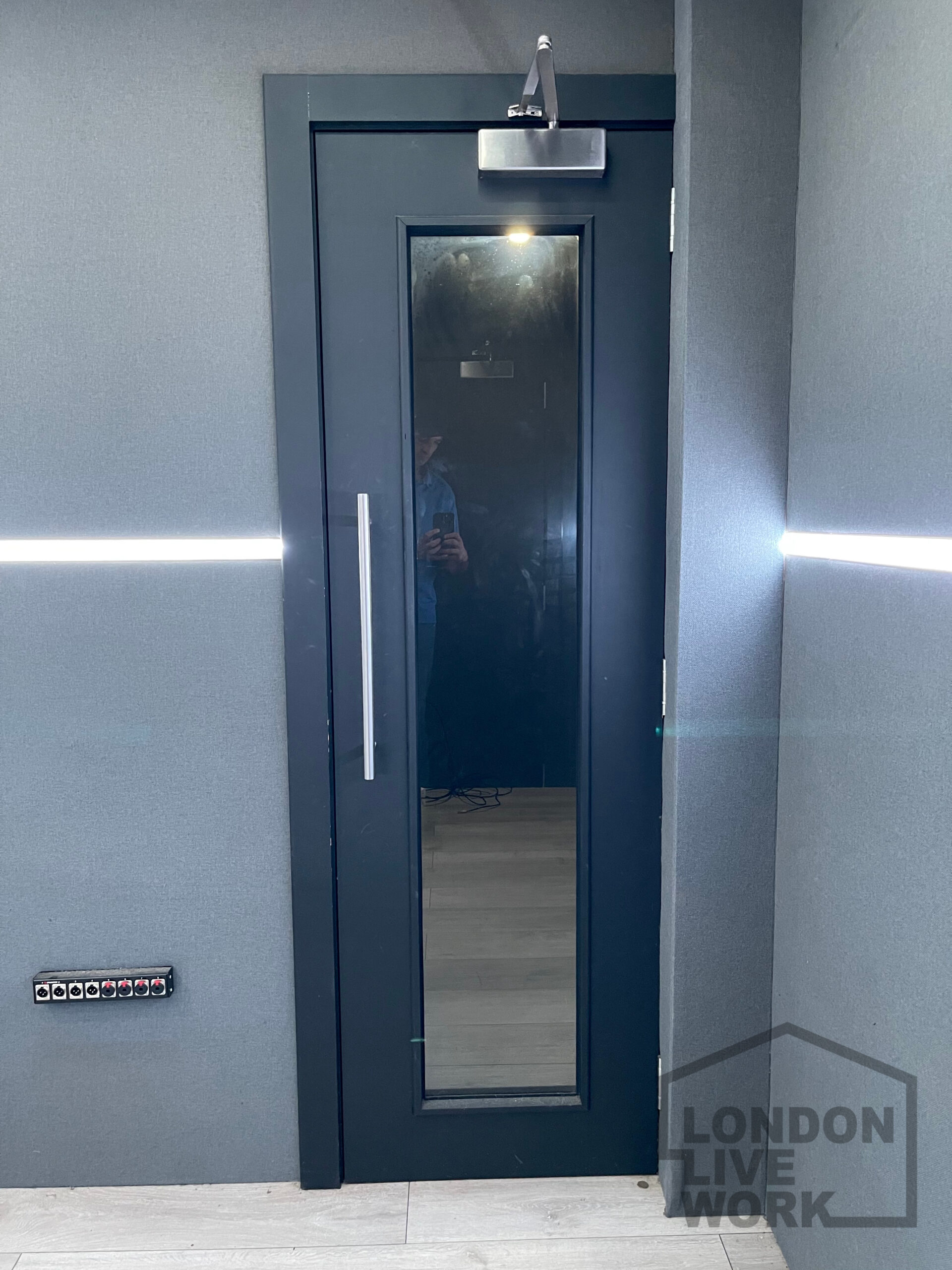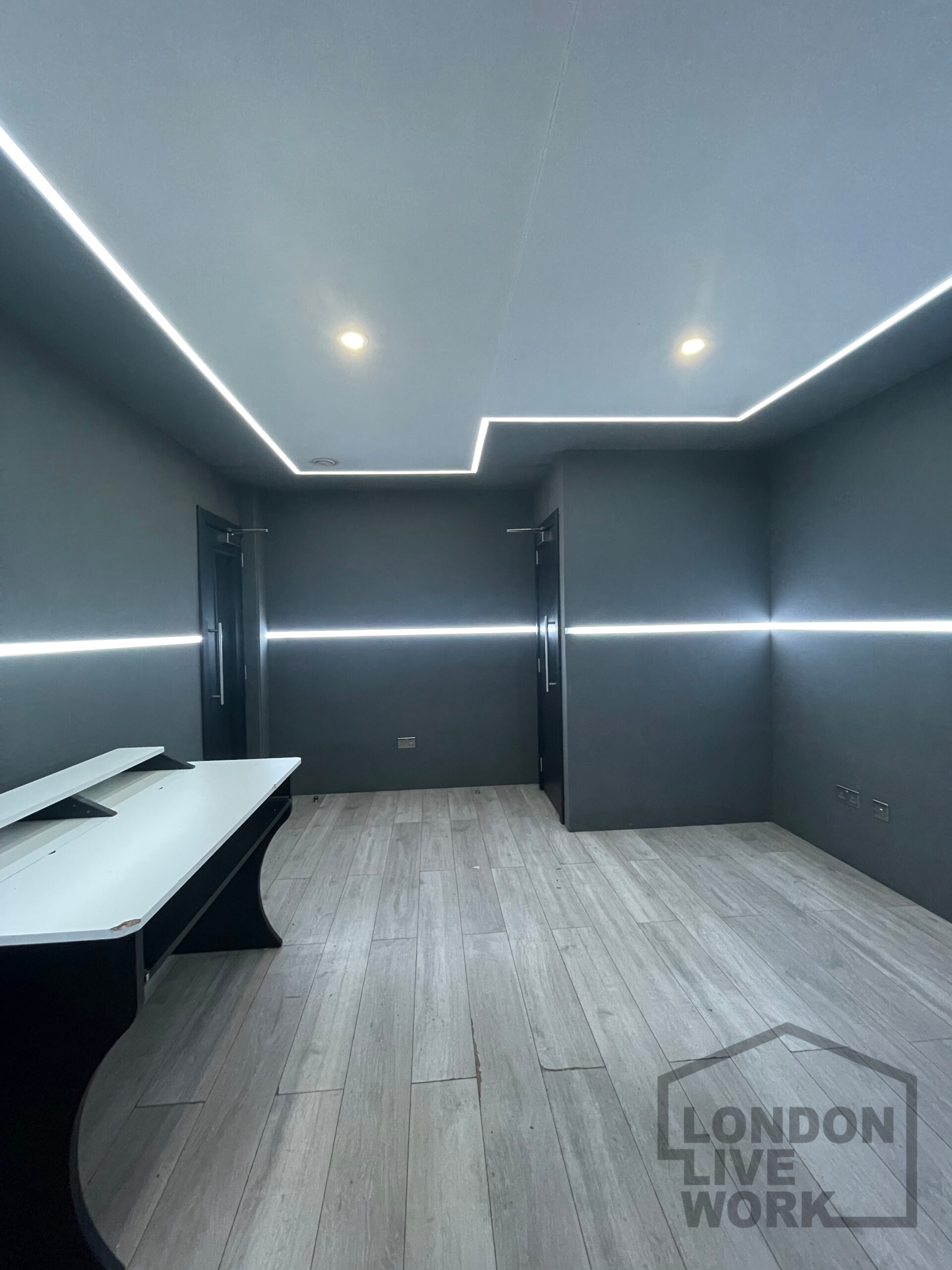 The studios are all soundproofed, have ventilation, electric sockets and led lights with neon backlights (both sets of lights can be turned on or off separately).