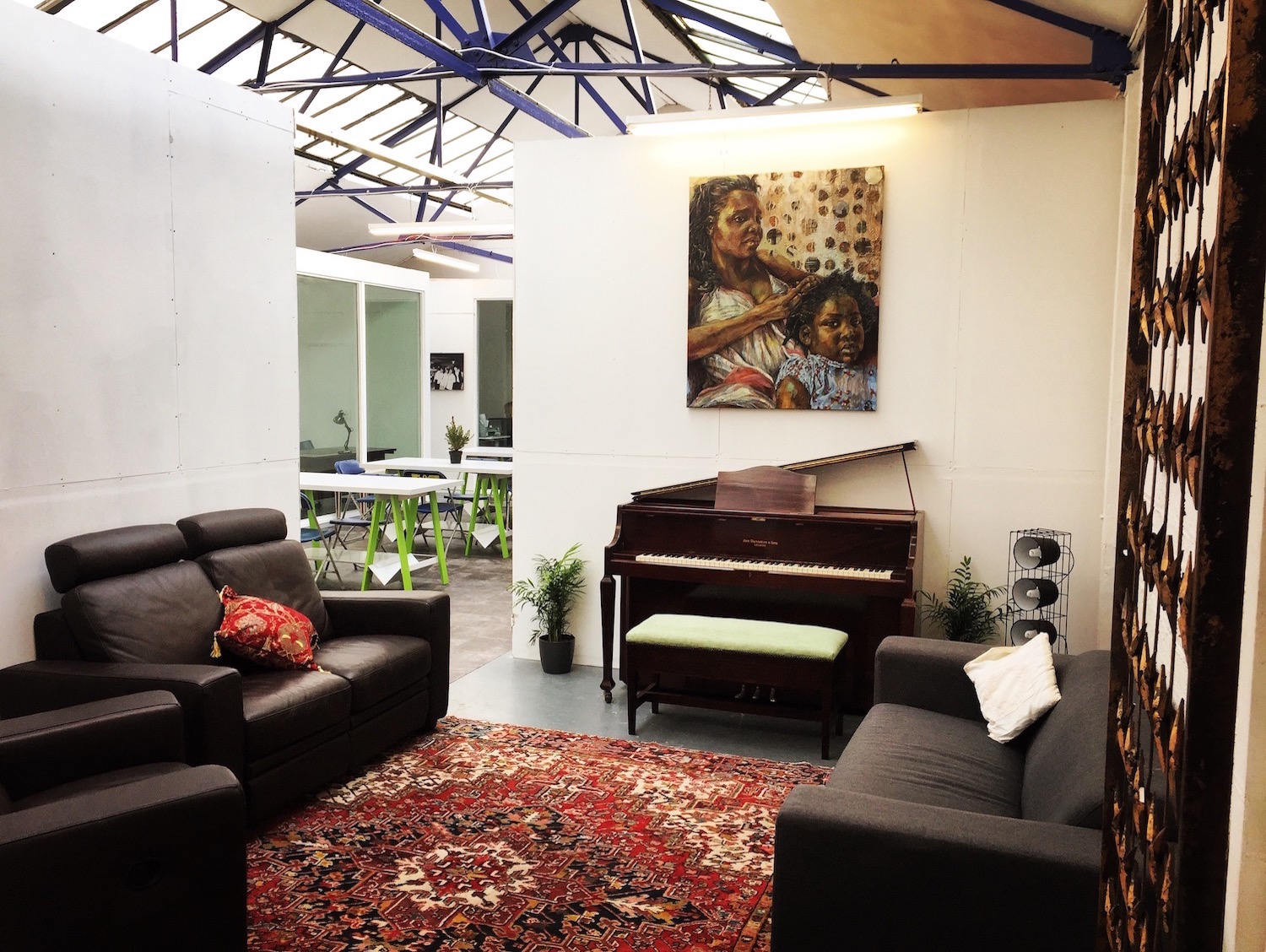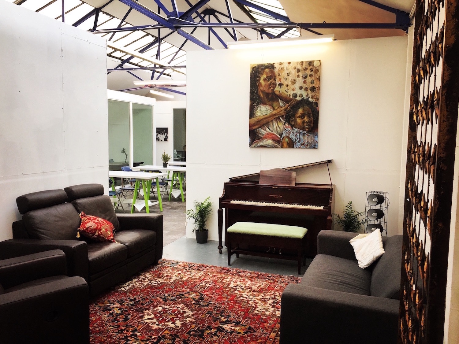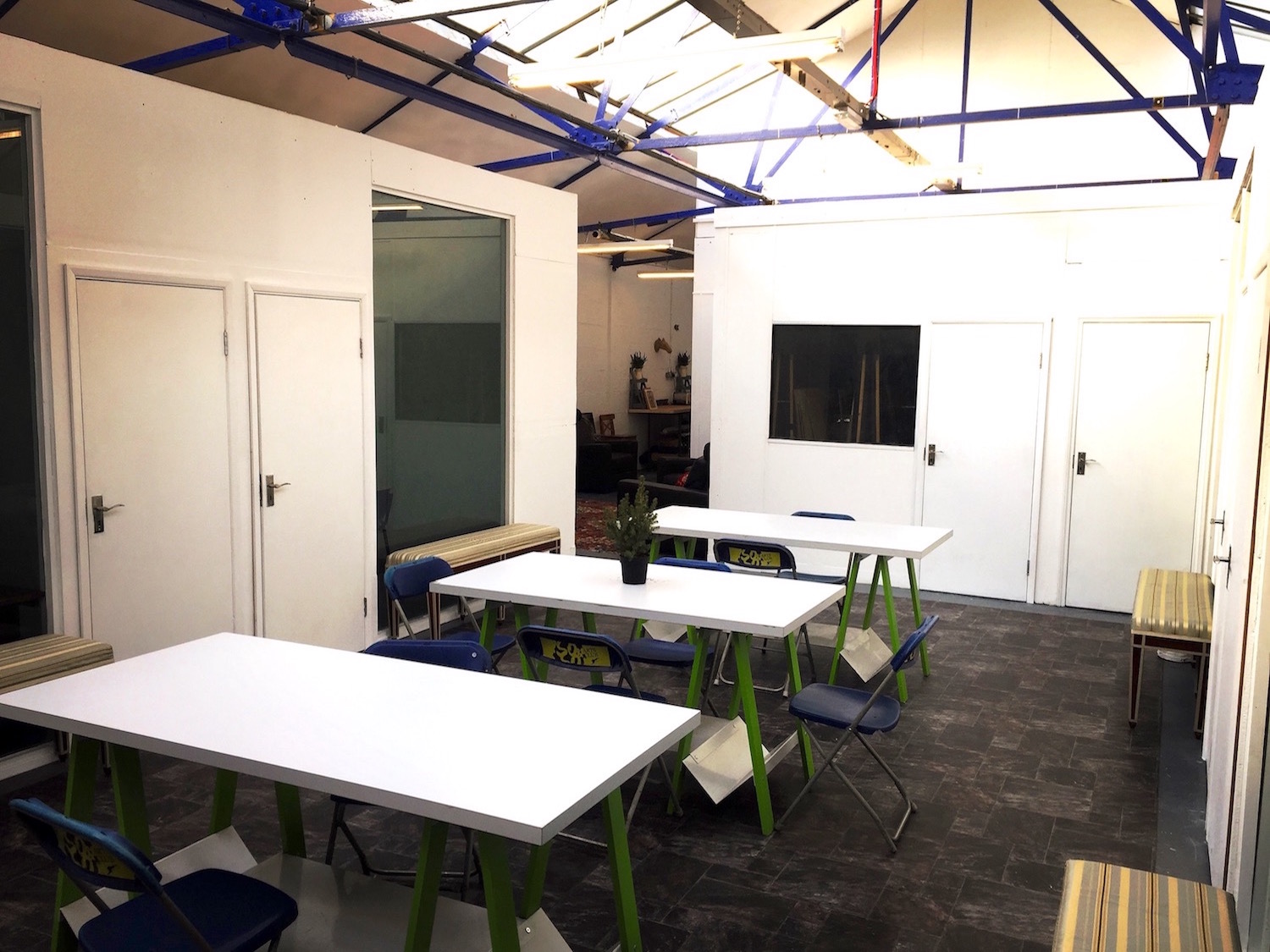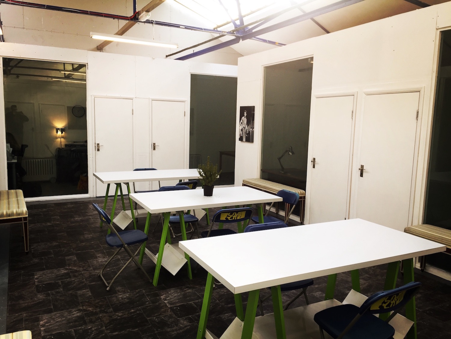 We have fantastic private and secure offices in which you can rent per desk at just £200 pcm all-inclusive. You’ll be sharing with other artists, creatives, and movers and shakers. Or you can rent the whole private office with a discount. Whole rooms are either £600 or £700 pcm. Rooms range in size but comfortably fit 3 or 4 desks and are all 100sqft+.