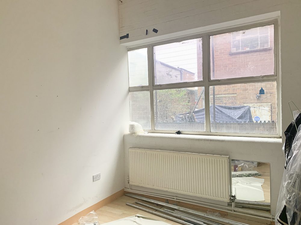 Studio 2: consists of bright white walls, open studio space a huge window for lots of natural light, laminate flooring and a 11ft high ceiling.