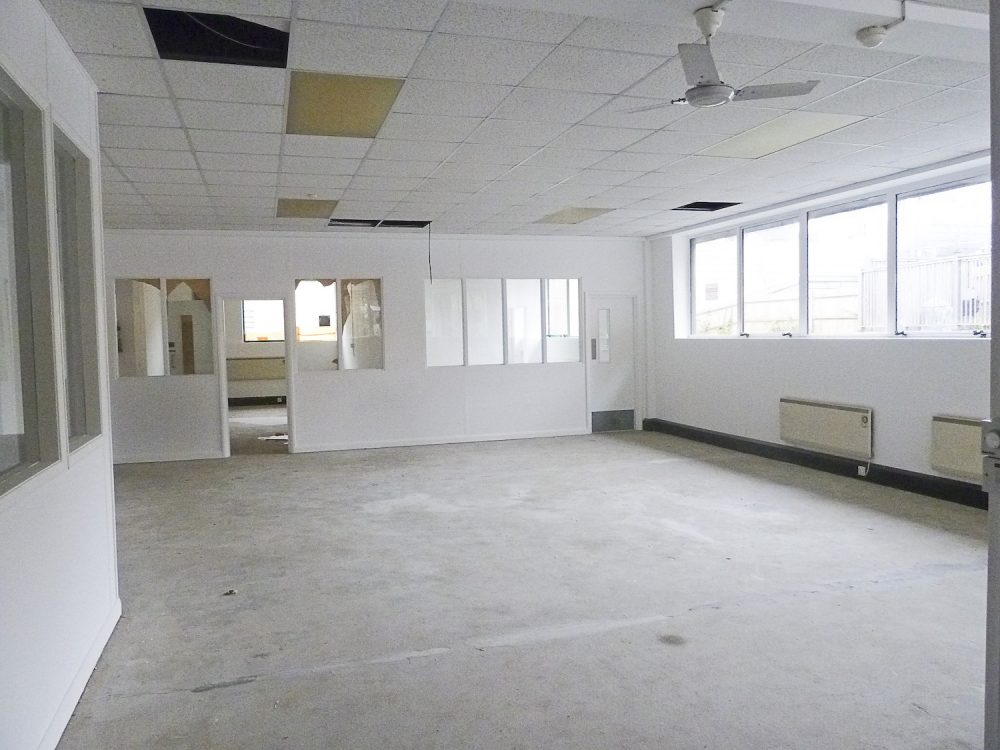 Various sizes available – some rooms have a suspended ceiling with recessed lighting, some areas have a roof high enough to put in a mezzanine floor if required.