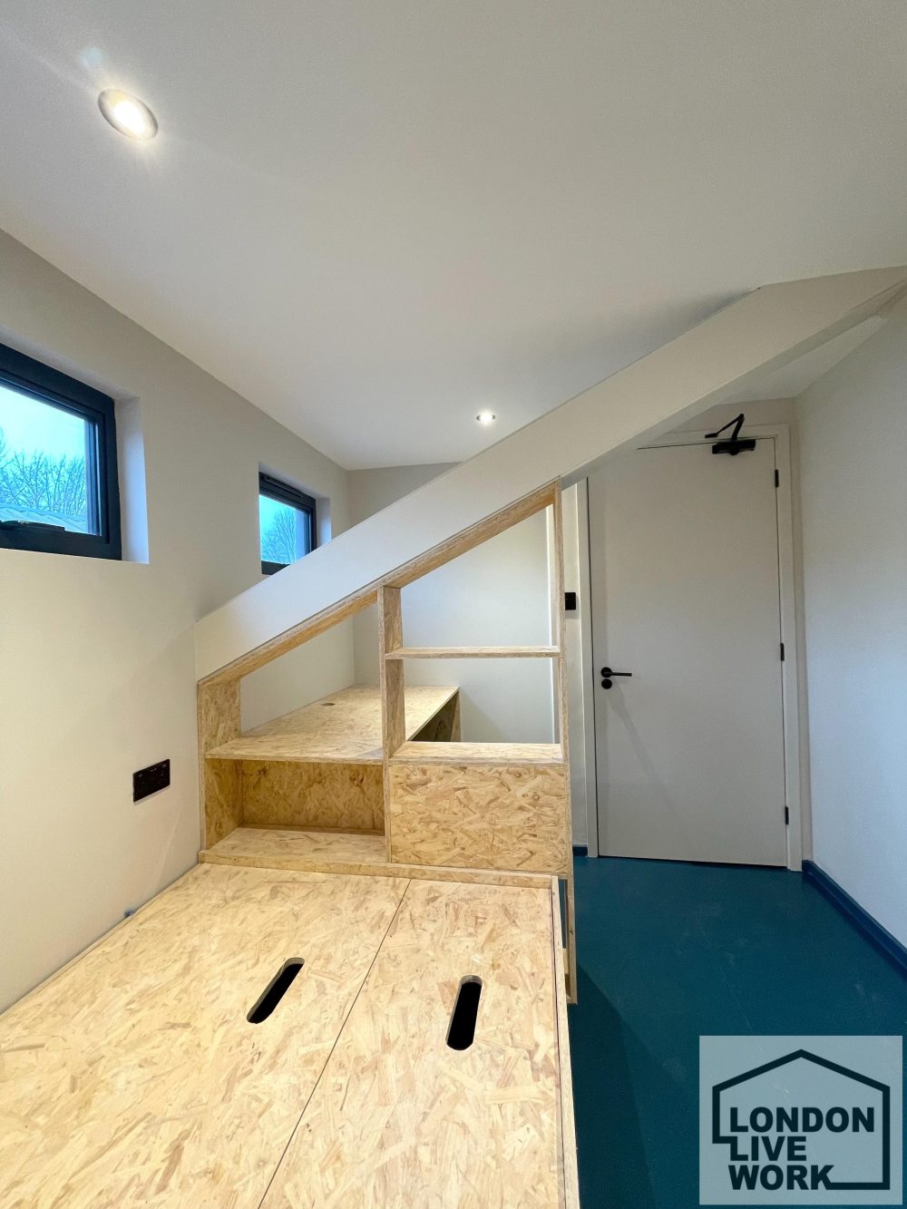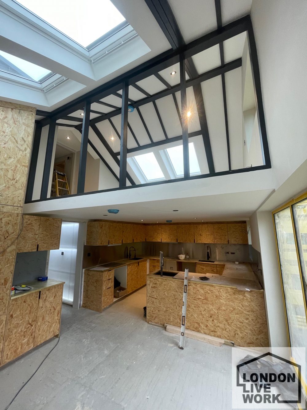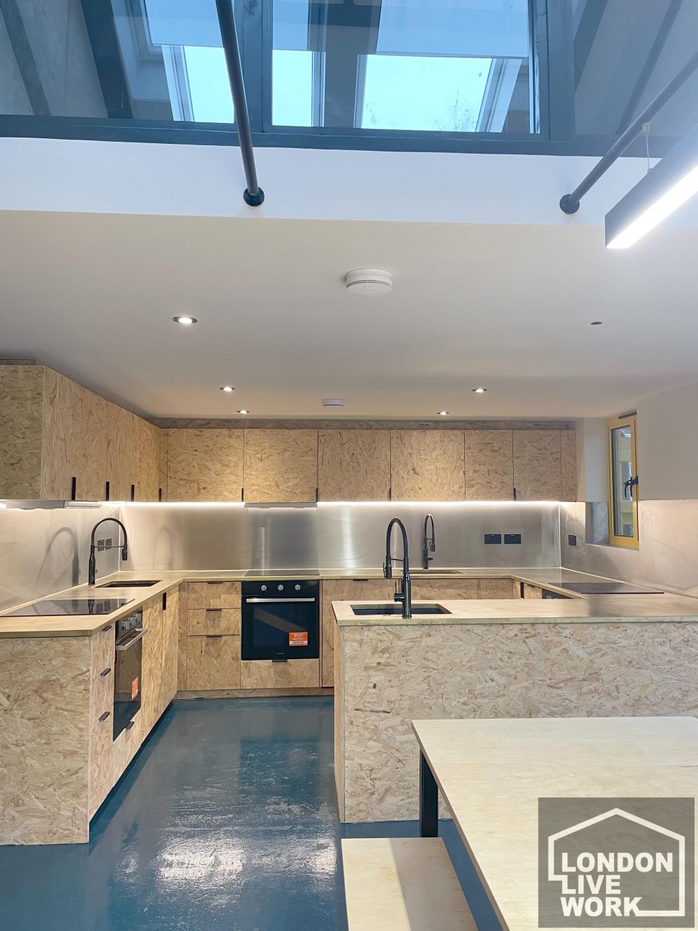 There is lots of natural light on the ground floor, windows at the front and back of the unit, plus large skylights.
