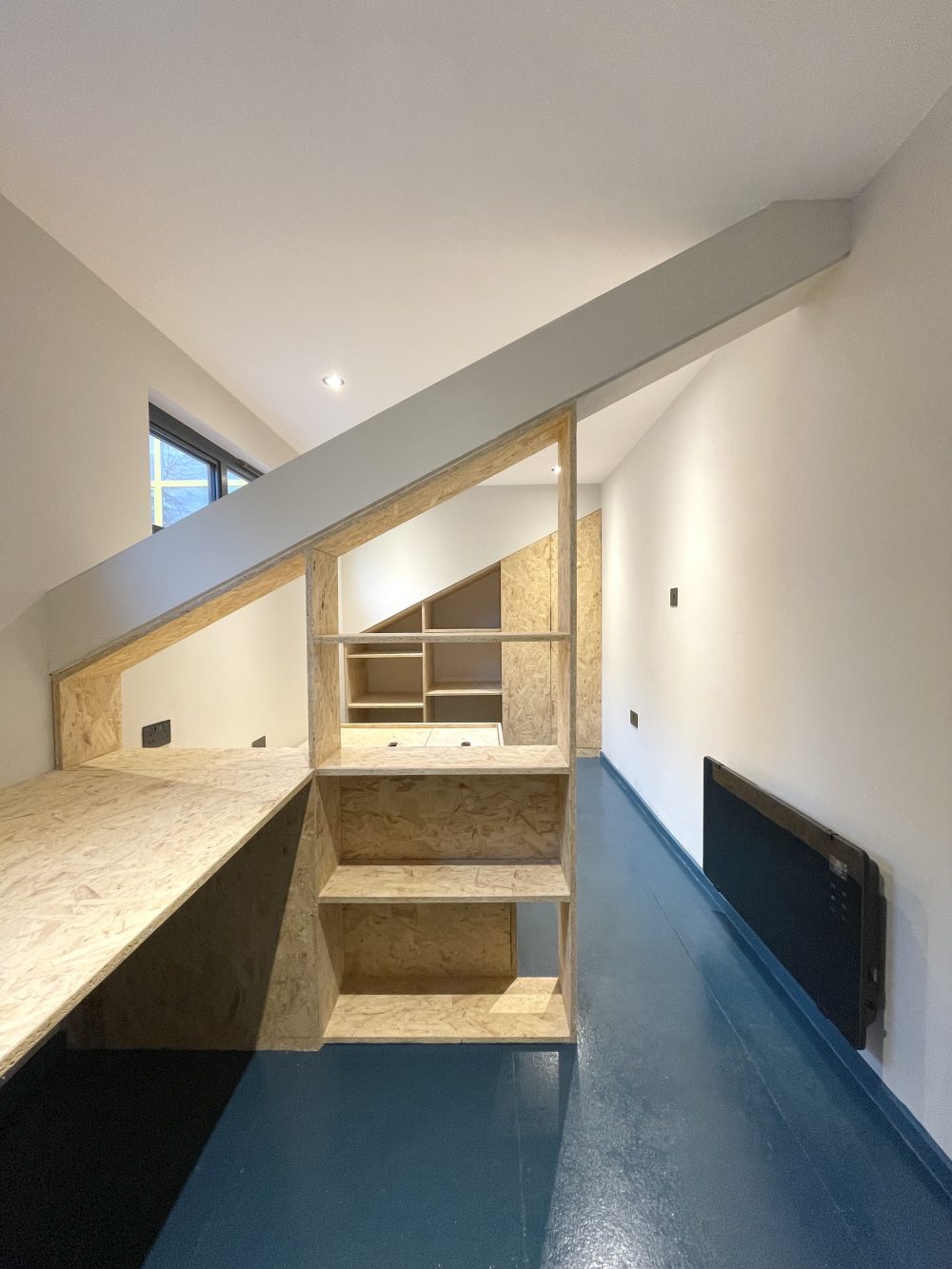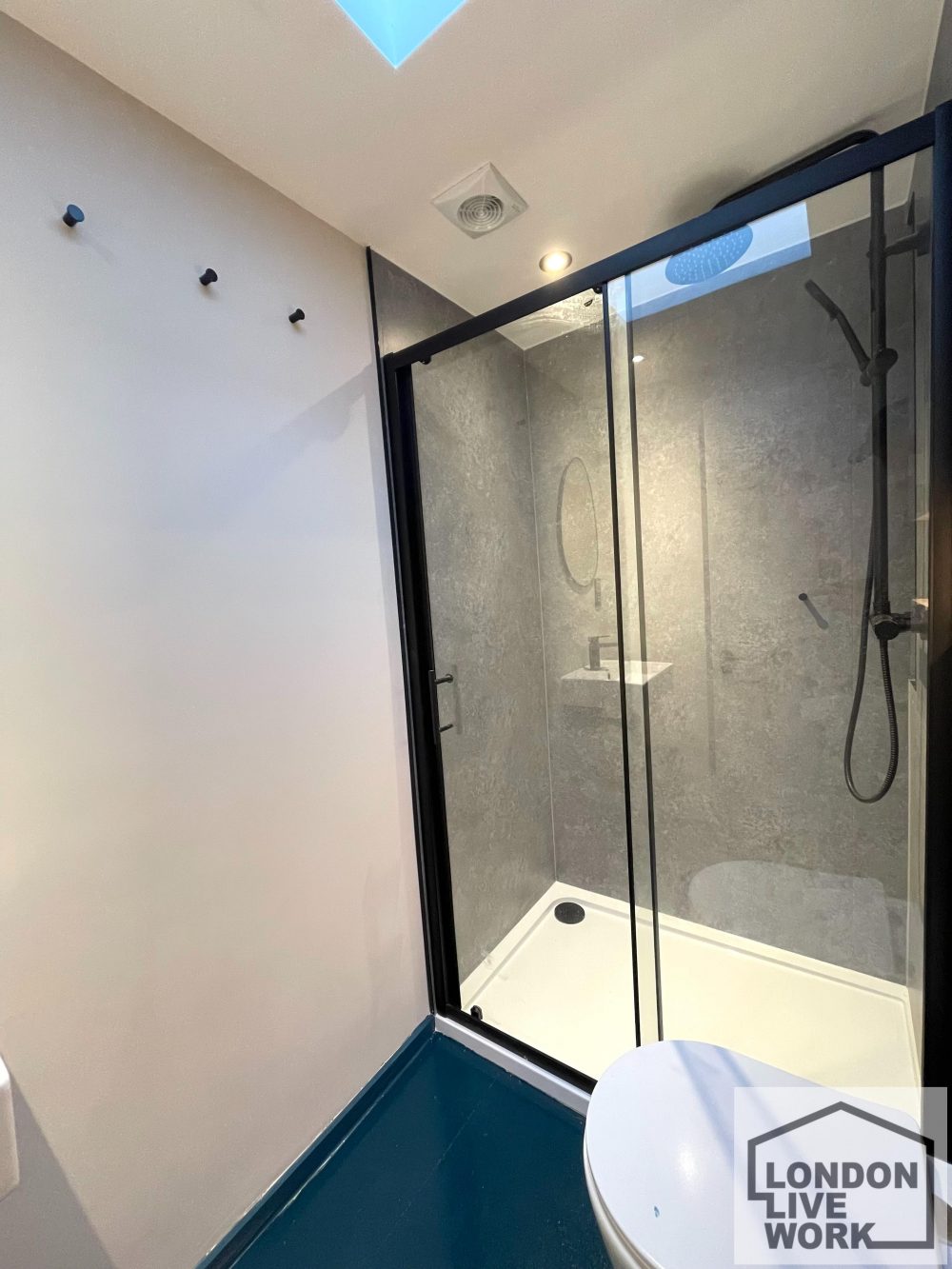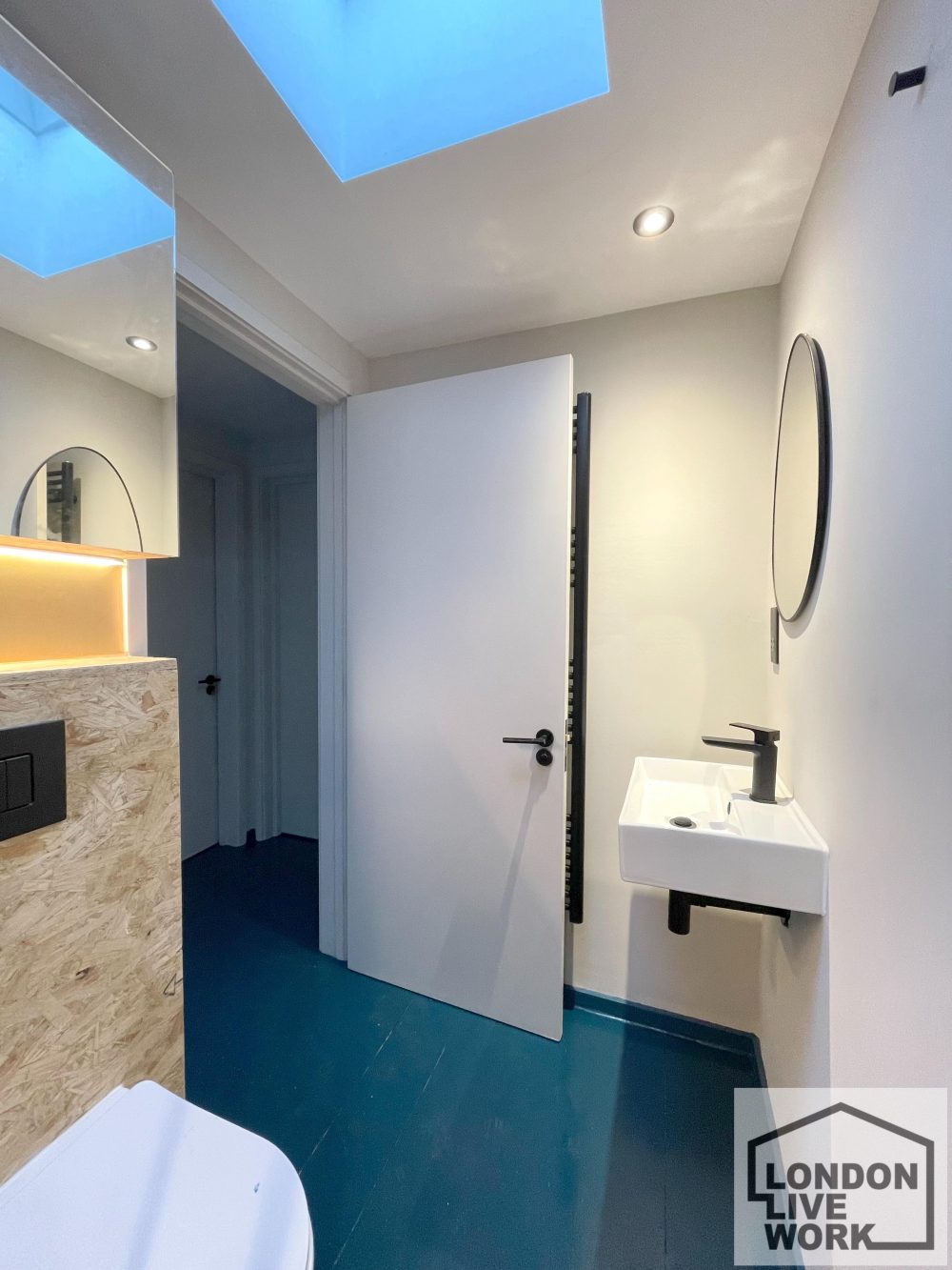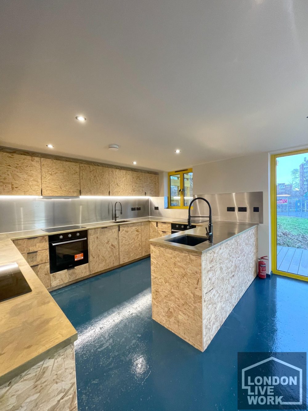 There is lots of natural light on the ground floor, windows at the front and back of the unit, plus large skylights.