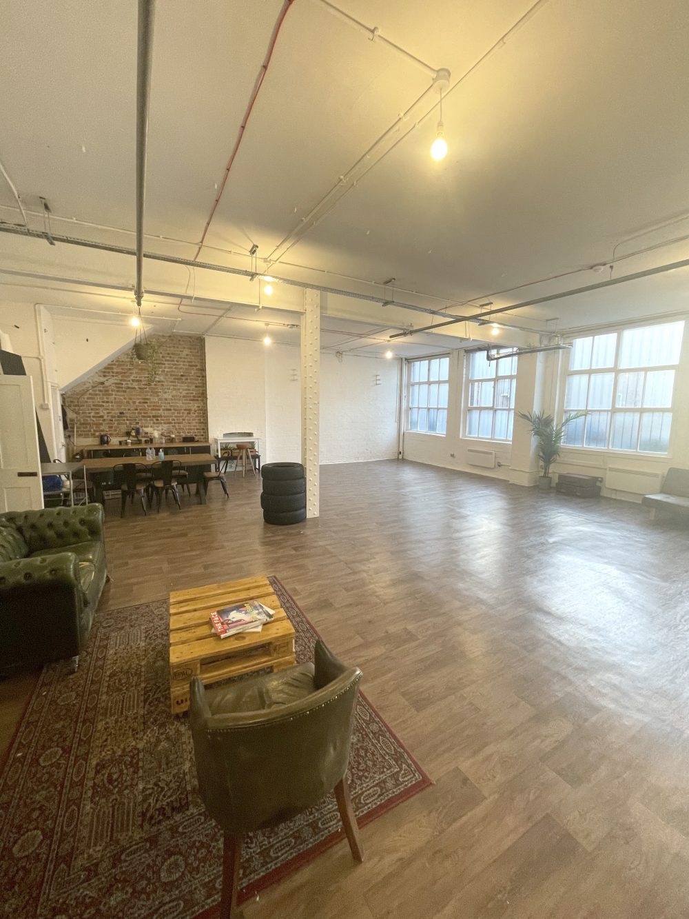 Exposed brickwork and plenty of original character make the building a natural environment for creativity. Blessed with natural light and white washed walls, the space lends itself perfectly to photo shoots and filming.
