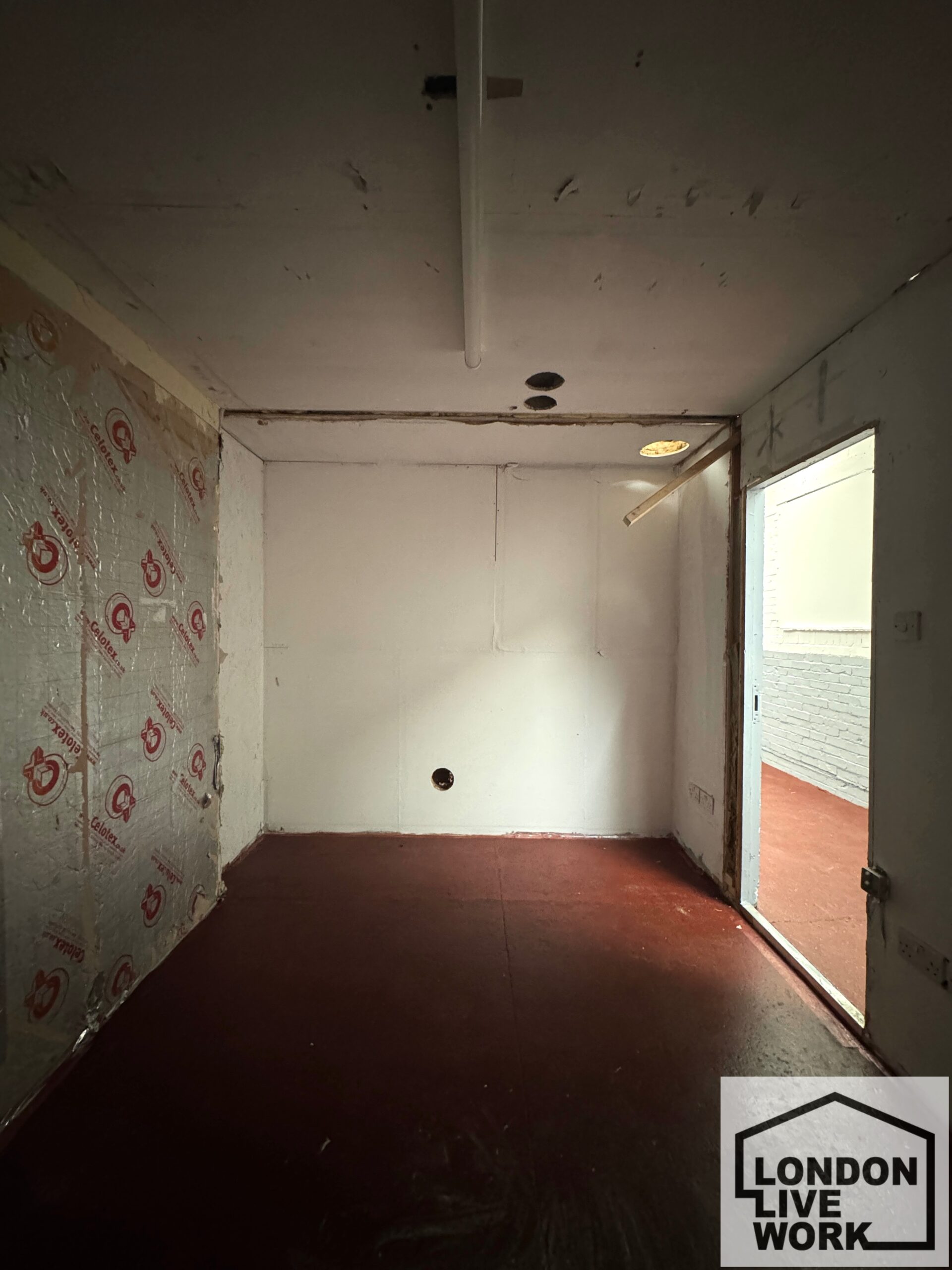 The ceiling height on the ground floor is 13ft, and there are 3 rooms / storage areas as well.